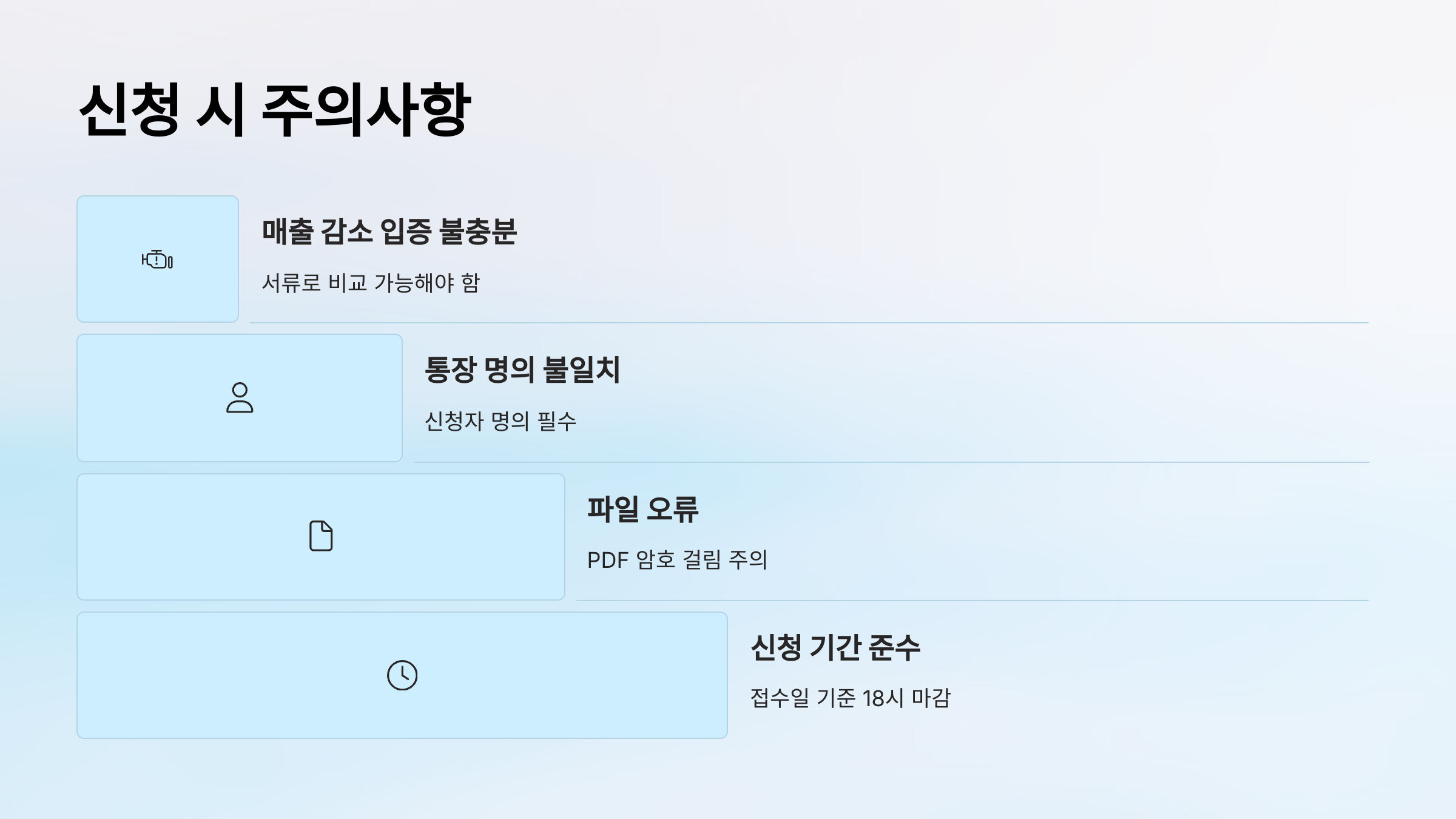 - 📌 매출 감소 입증 불충분 (서류로 비교 가능해야 함)