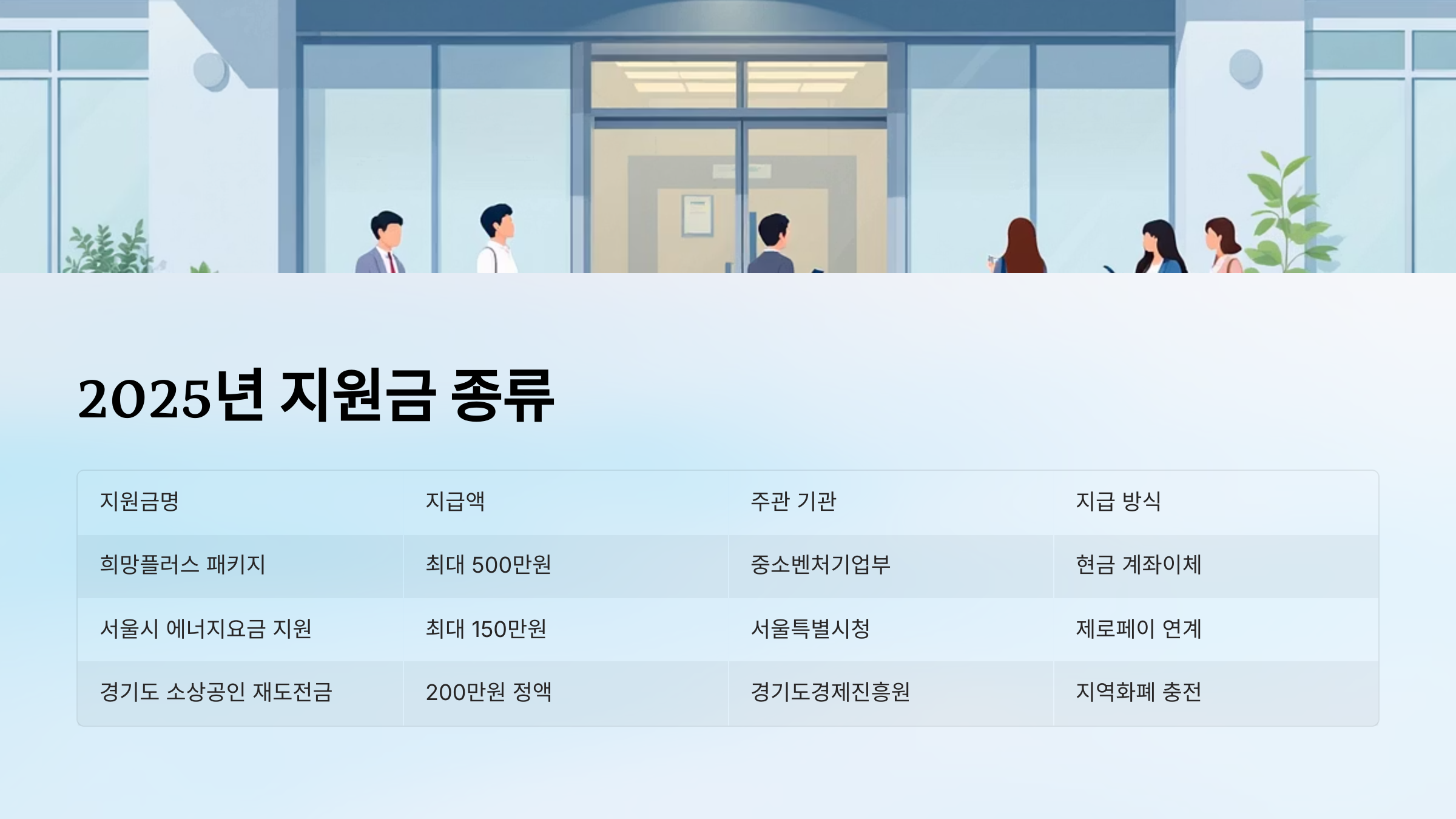 | 지원금명 | 지급액 | 주관 기관 | 지급 방식 |