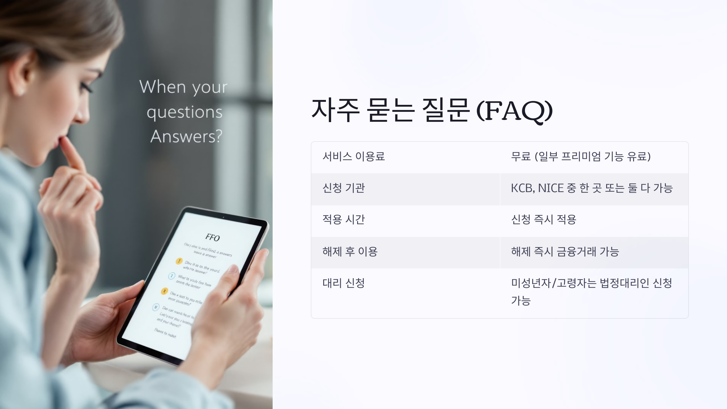 A4. 해제도 즉시 반영돼서 바로 신용카드 발급이나 대출 심사가 가능해져요.