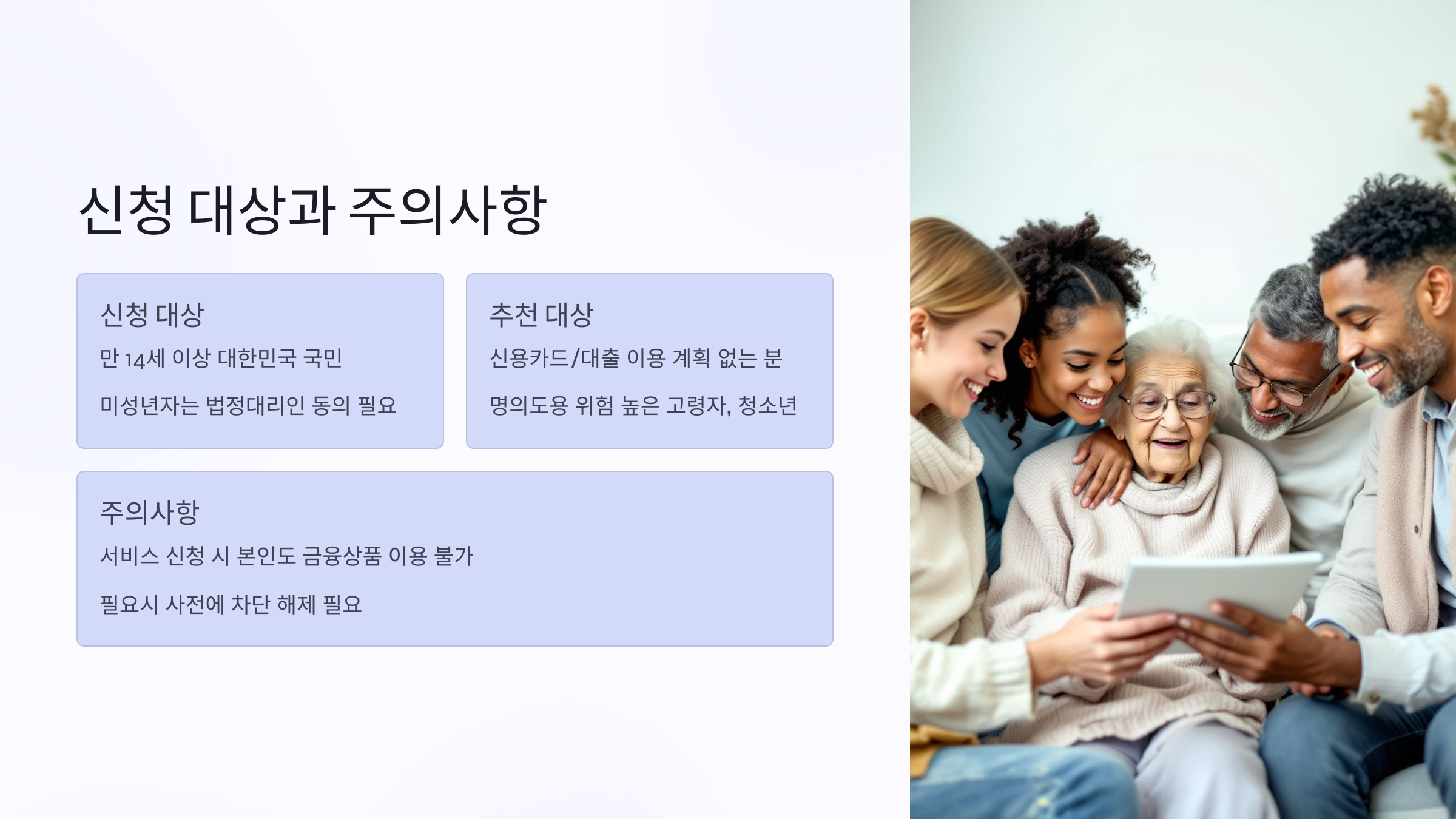 ‘내가 신용거래를 원하지 않을 때는 완벽하게 막을 수 있다’는 것이 이 서비스의 핵심이에요. 특히 취업준비생이나 노년층처럼 여신 이용 가능성이 낮은 사람들은 장기적으로 등록해두는 것도 안전한 선택이에요.