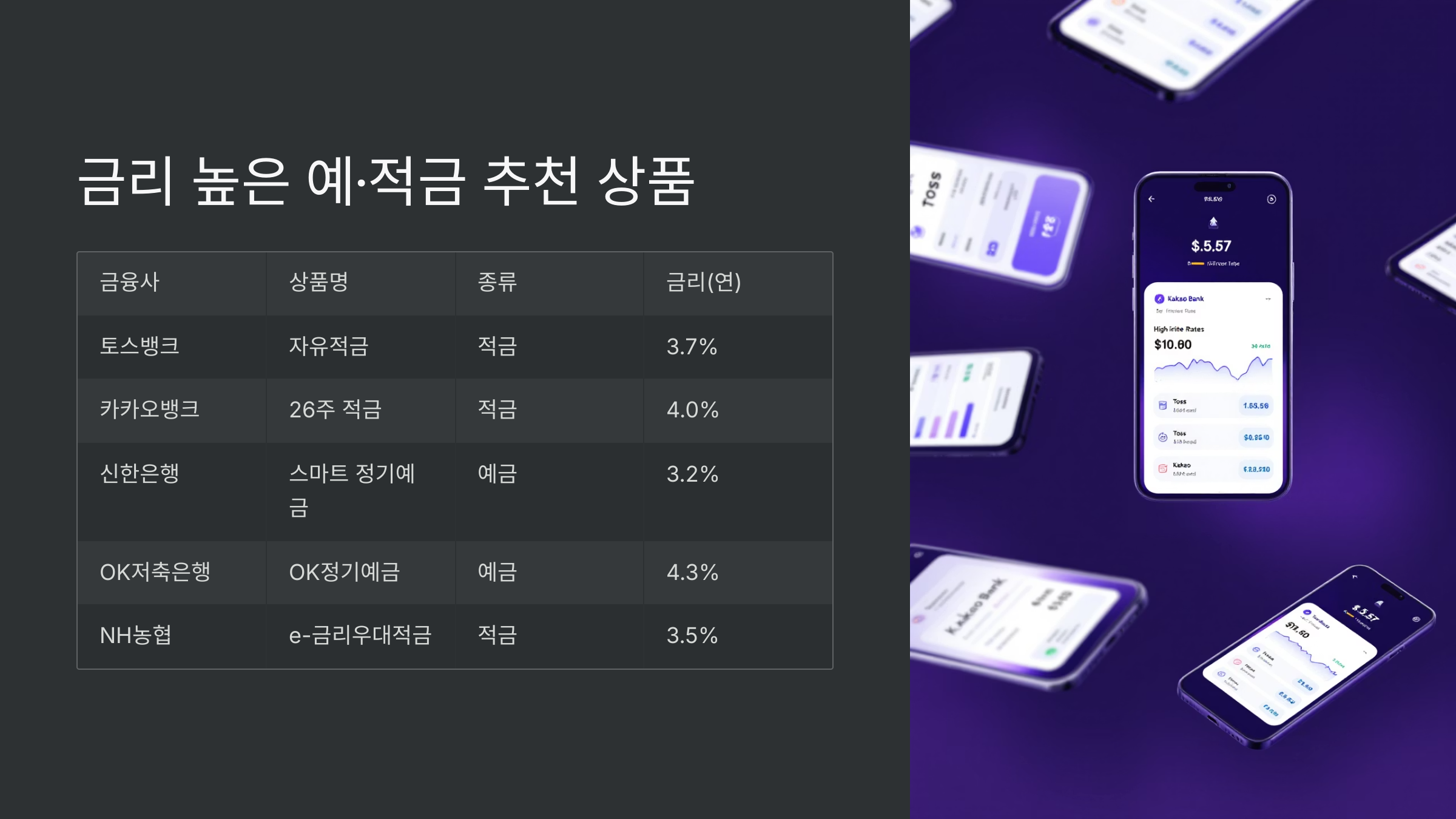예금·적금 고금리 TOP 5 비교표