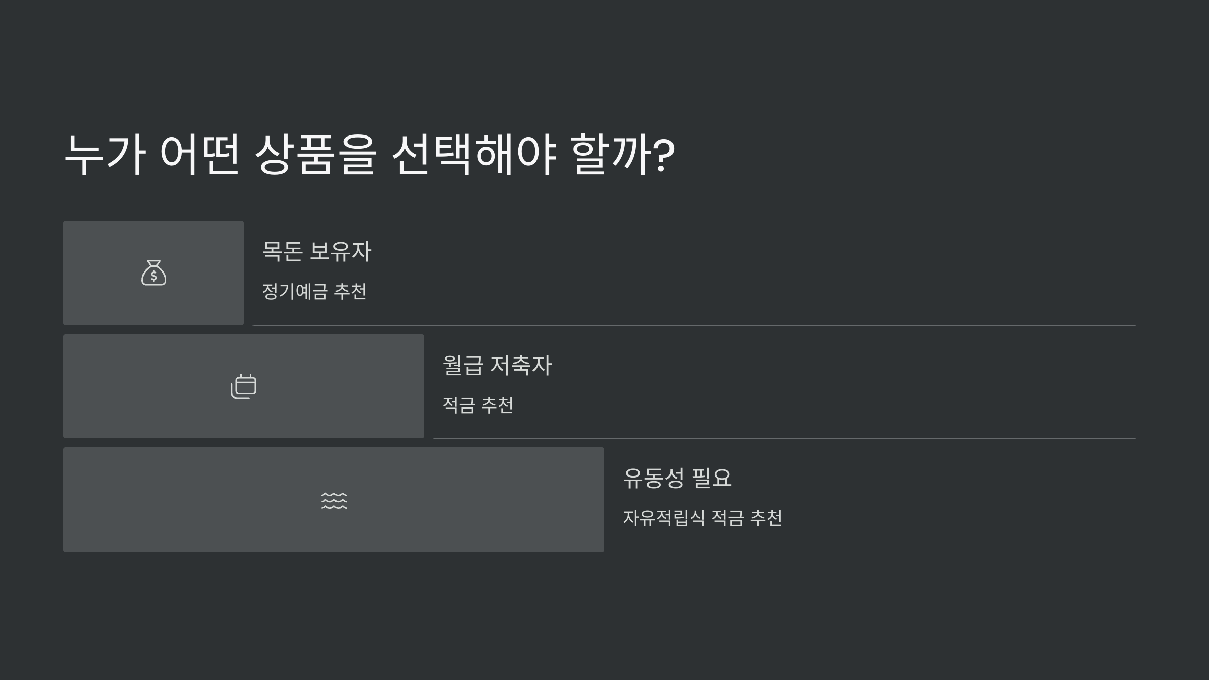 예금 vs 적금 대상자별 추천표