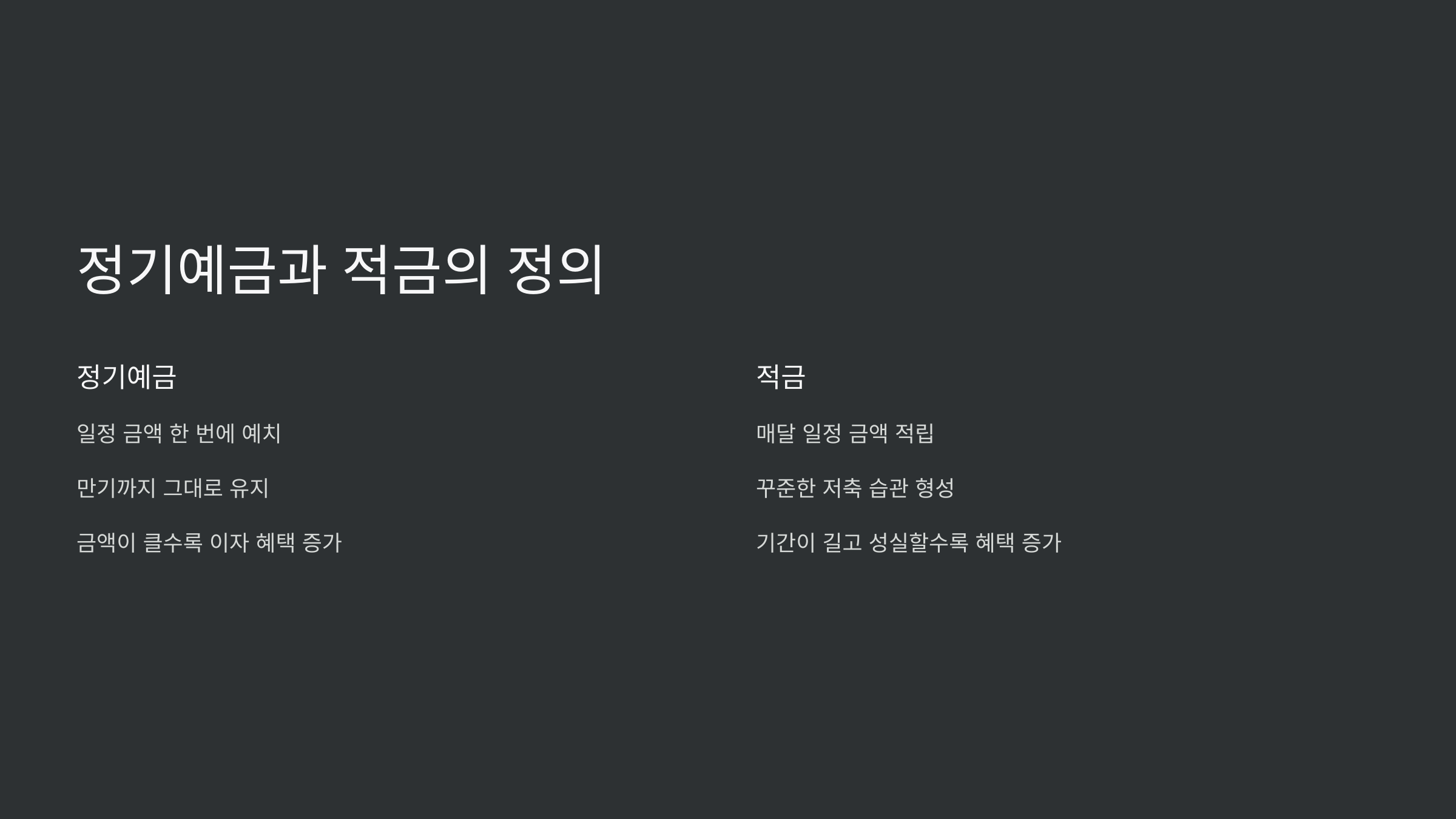| 항목 | 정기예금 | 적금 |