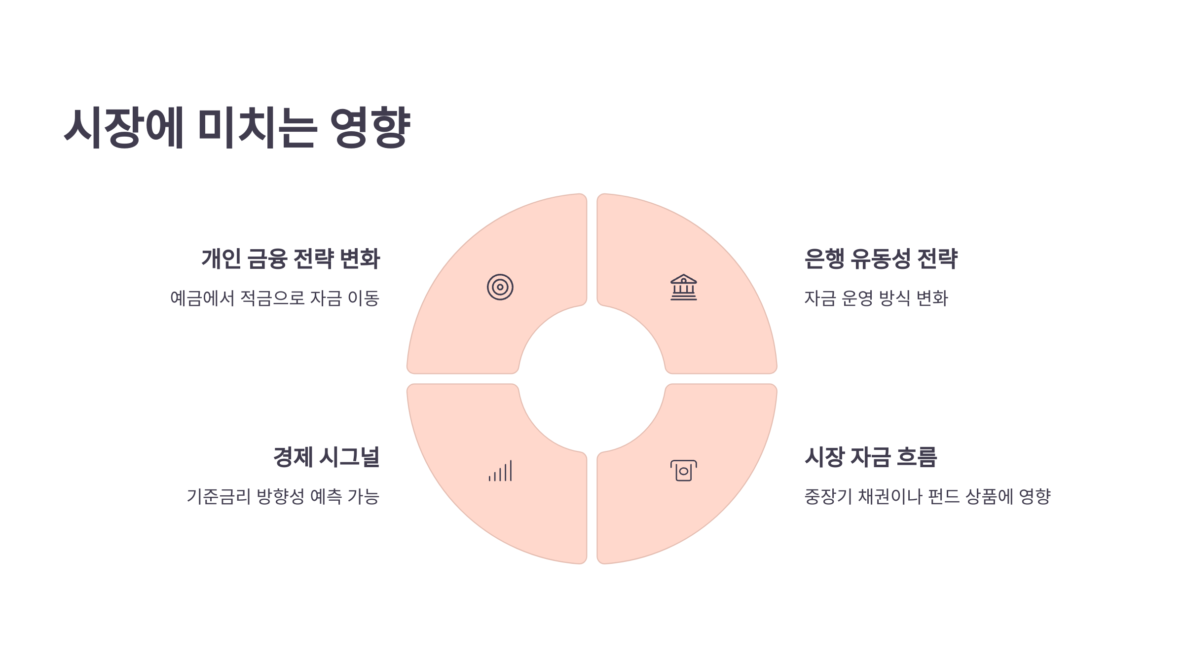 가장 큰 영향은 개인들의 금융 전략 변화예요. 예금보다는 적금으로 몰리는 흐름이 생기죠.