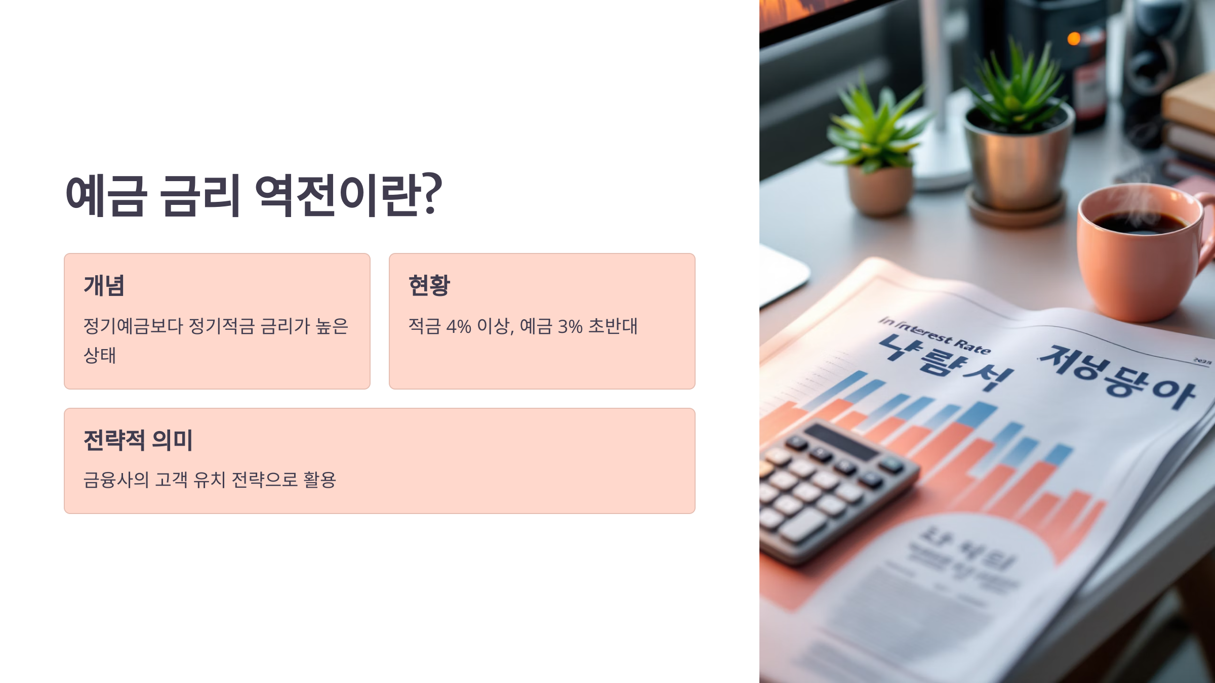 요즘 은행에 가보면 신기한 걸 하나 발견할 수 있어요. "어, 적금 금리가 예금보다 높네?" 바로 예금 금리 역전 현상이에요. 한때는 예금 금리가 더 높은 게 당연했지만, 지금은 상황이 달라졌죠.