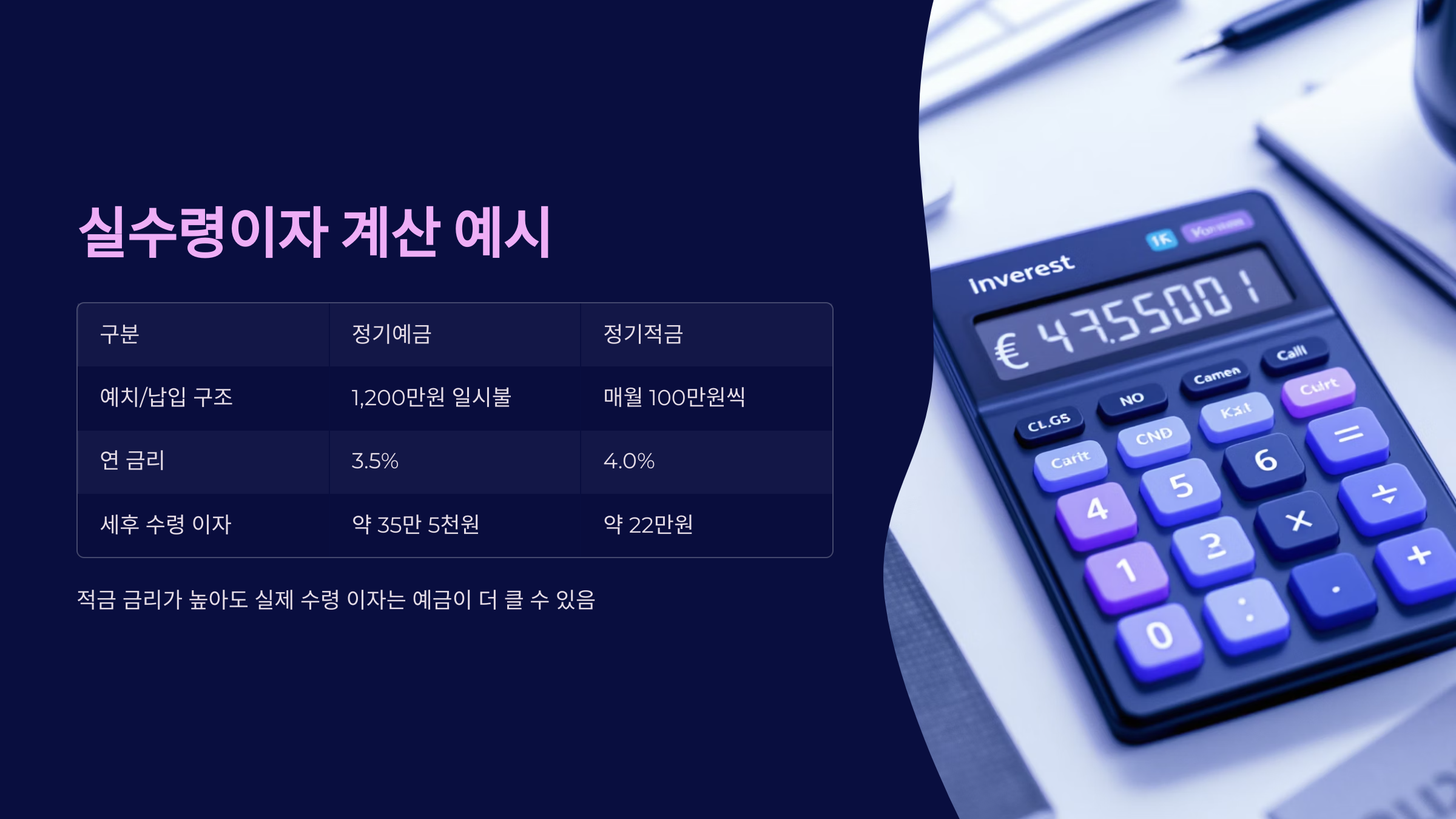 | 세후 수령 이자 | 약 35만 5천 원 | 약 22만 원 |