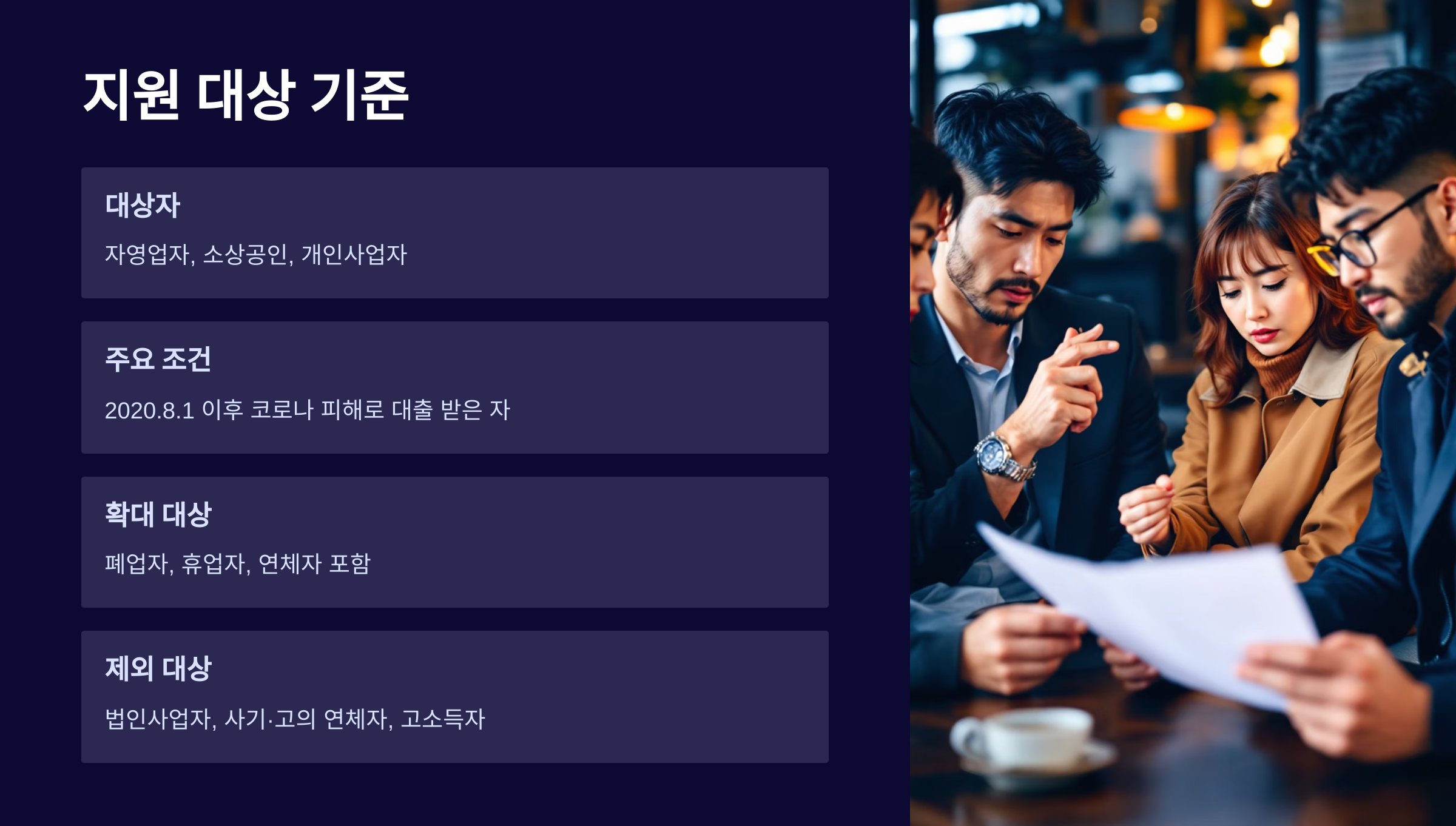 기존에 ‘금융권 성실 상환자’를 중심으로 운영되던 방식에서 2025년부터는 폐업자, 휴업자, 연체자까지 포함하는 방향으로 확대됐어요. 단, 사기·고의 연체 또는 고소득자는 제외돼요.
