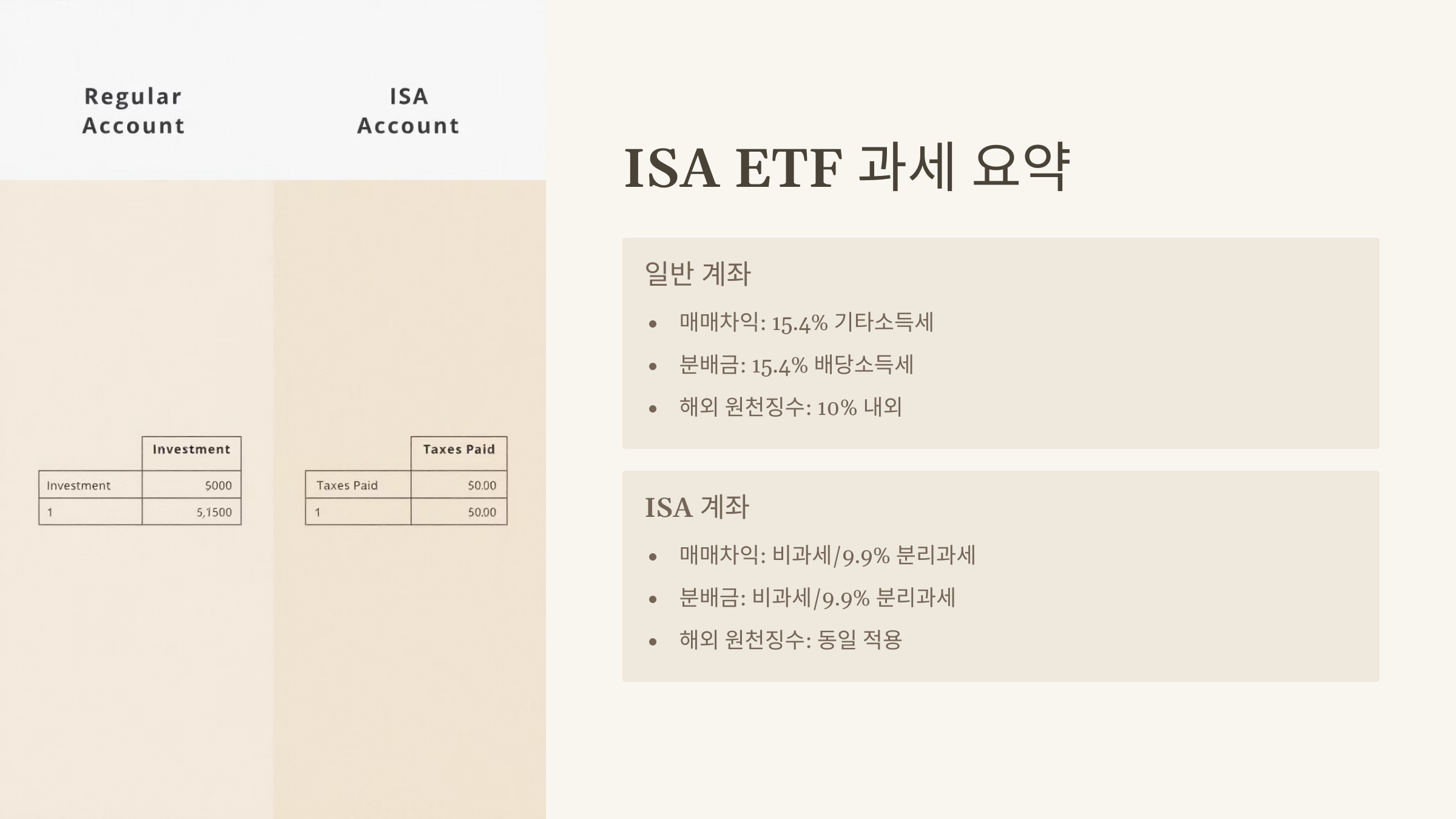 ISA 계좌에서 ETF를 거래하면 세제 혜택을 받을 수 있지만, 국내 상장 해외 ETF의 경우 수익의 종류에 따라 과세 방식이 달라져요. 예를 들어, 환급형/분배형/배당형 등 ETF 구조에 따라 세금이 완전히 달라질 수 있어요.