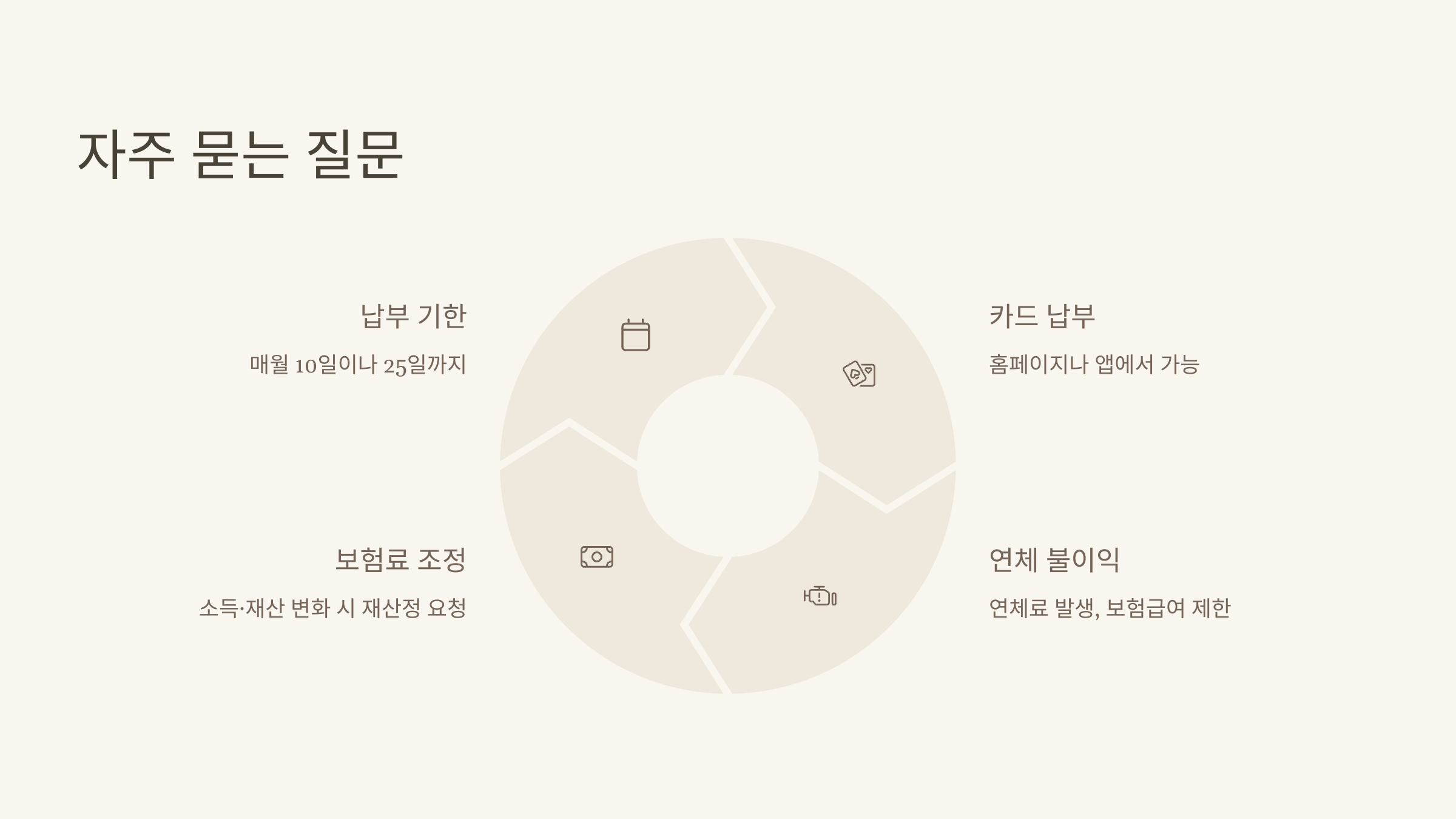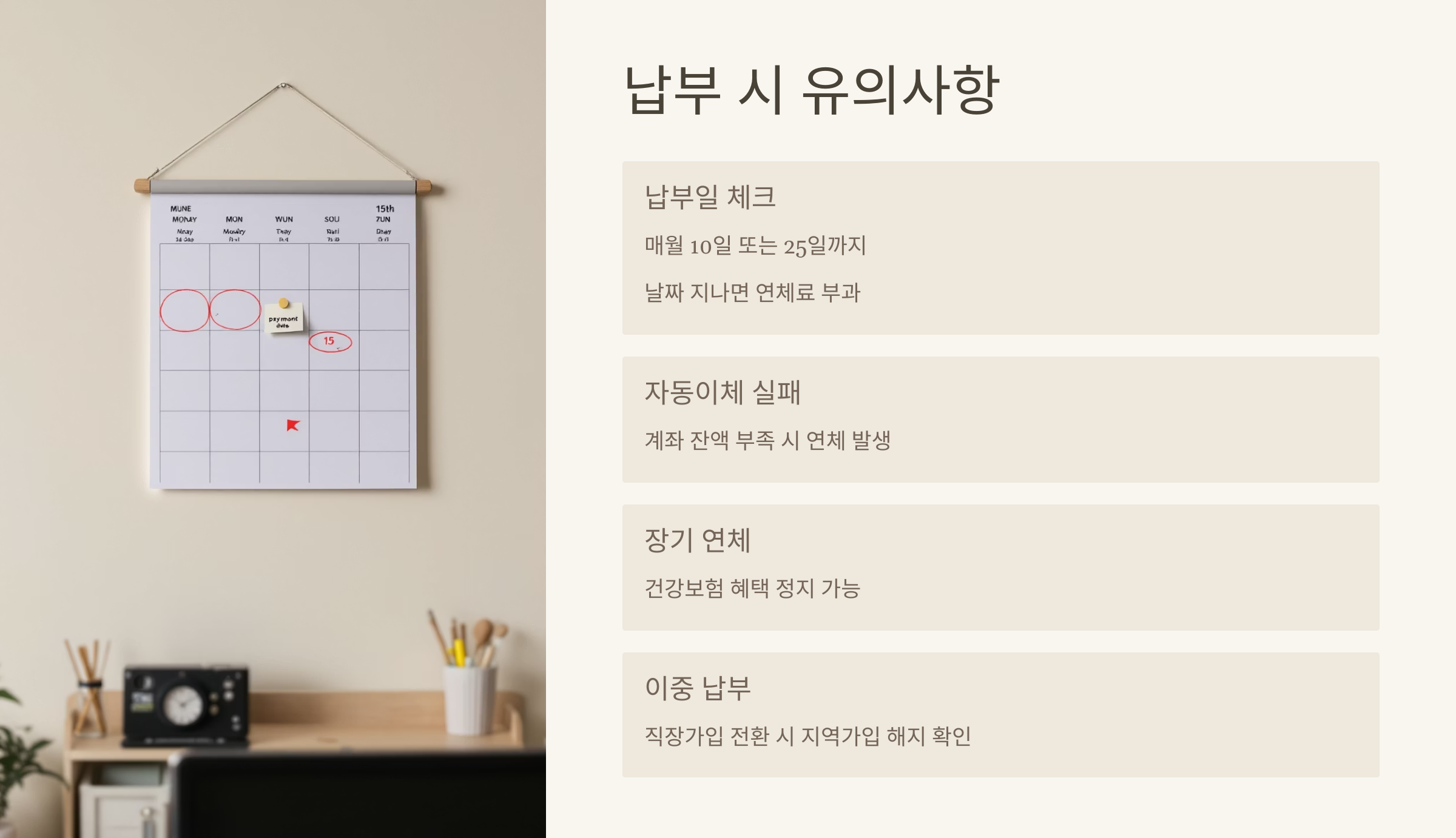 - 장기 연체: 장기 미납 시 건강보험 혜택 정지될 수 있어요.