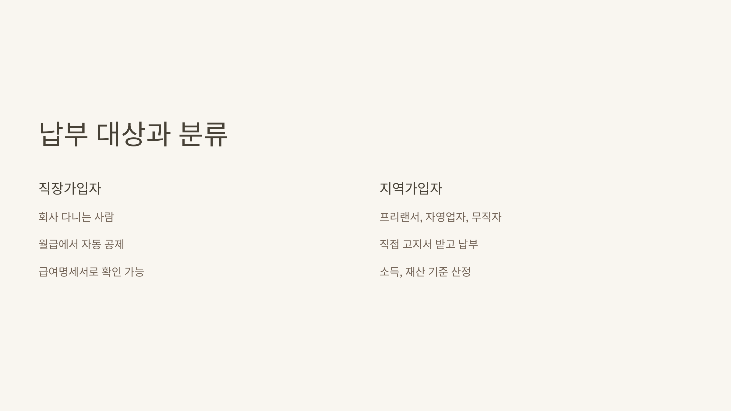 건강보험료 납부방법을 정확히 이해하려면 먼저 납부 대상과 분류부터 알아야 해요. 건강보험료는 크게 두 가지 유형으로 구분돼요.