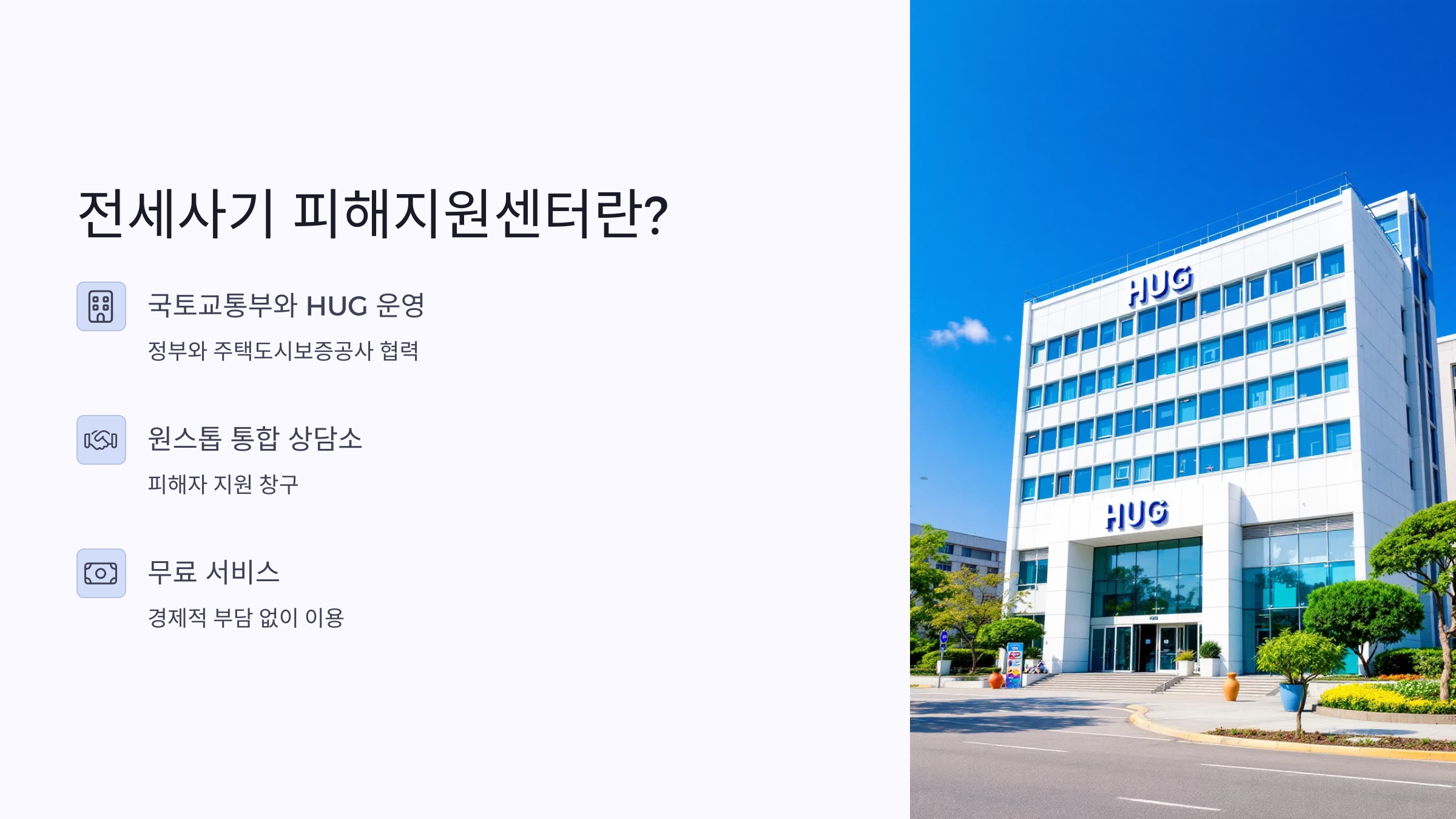 전세사기 피해지원센터는 국토교통부와 주택도시보증공사(HUG), 그리고 각 지자체가 협력해 만든 피해자 통합 상담소예요.