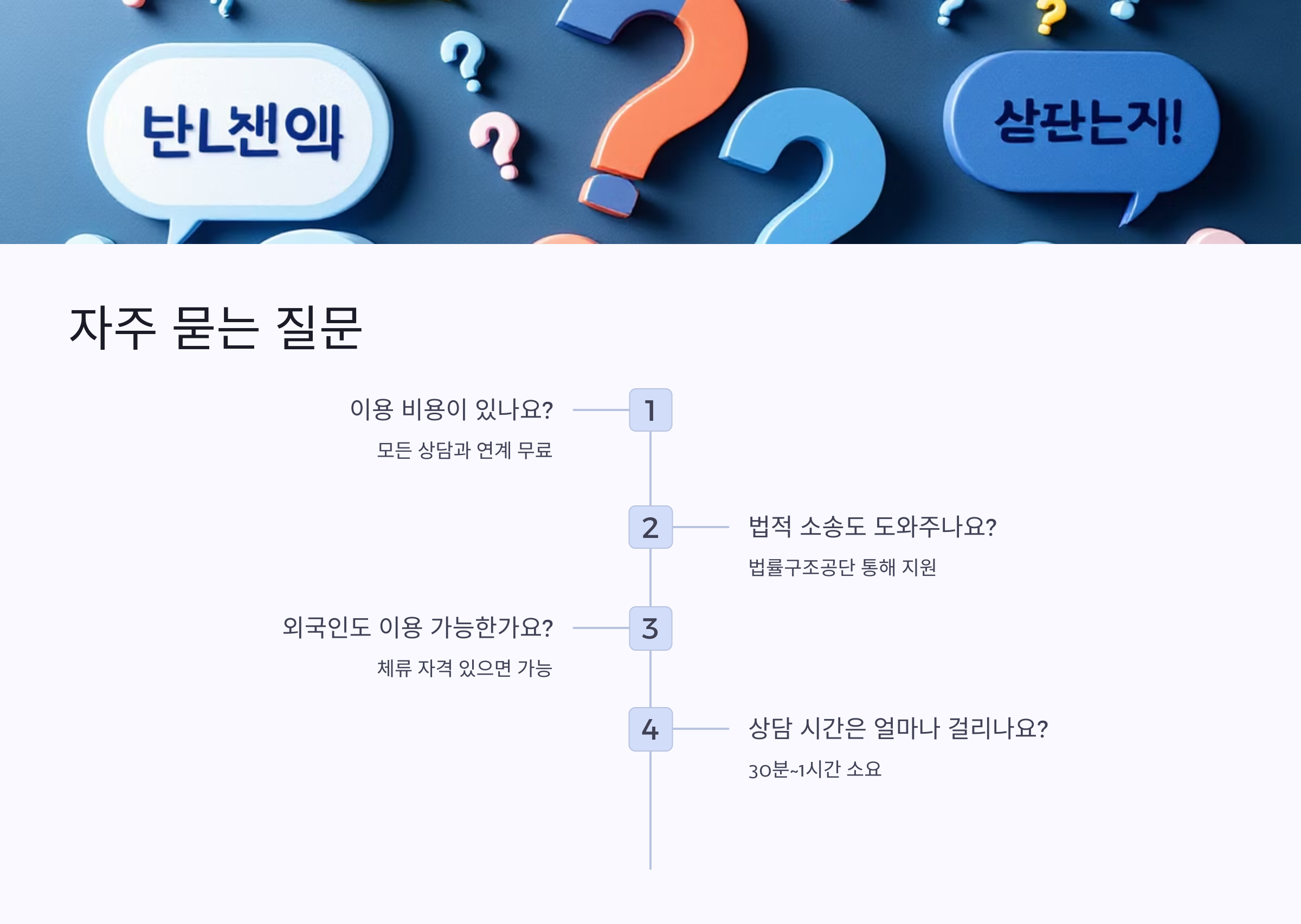 | 법률 지원 | 대한법률구조공단과 연계한 무료 상담 |