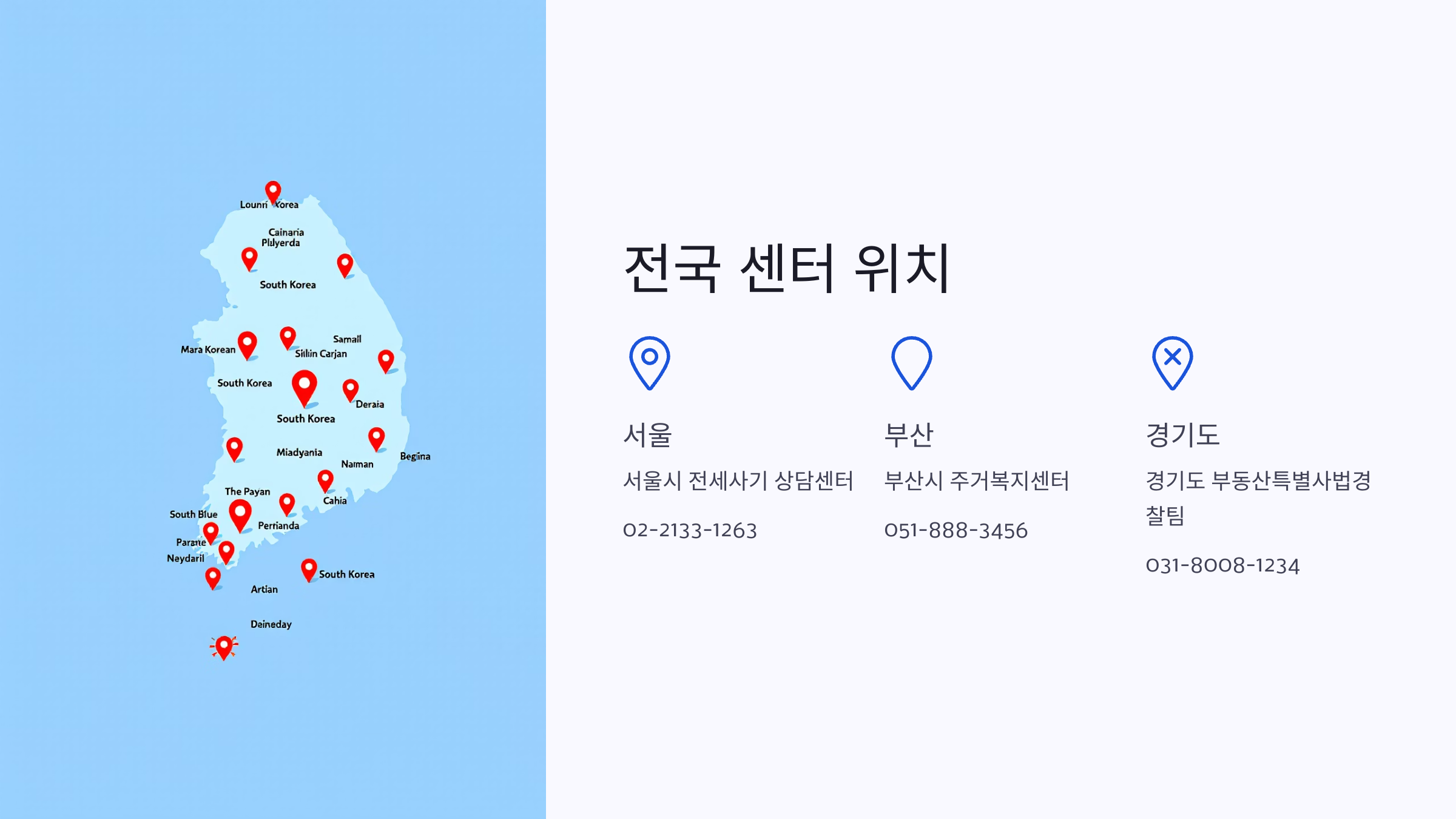 “내가 지금 당장 갈 수 있는 전세사기 피해지원센터는 어디일까요?” 가장 가까운 센터를 찾는 것이 시작이에요.