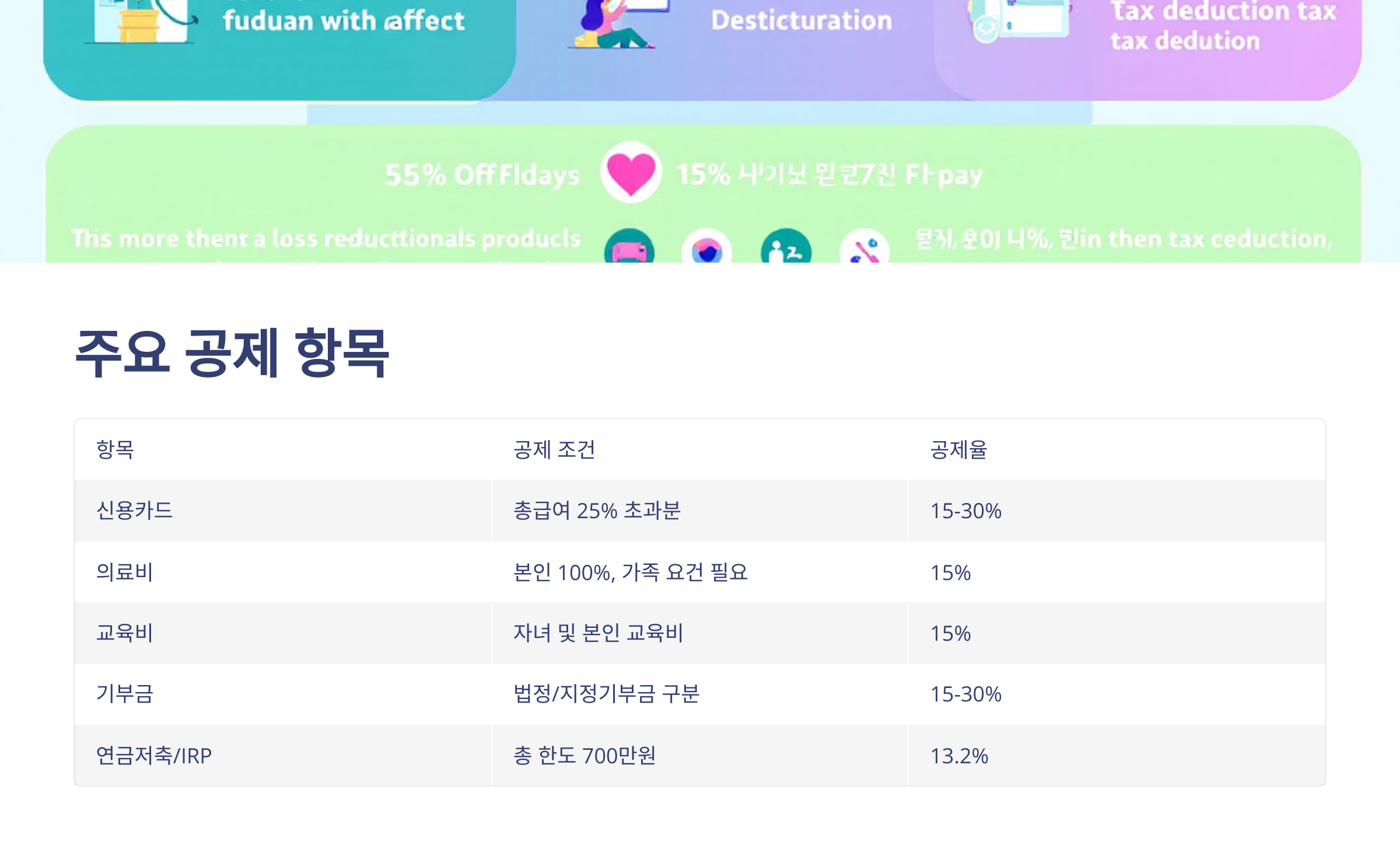 주요 공제 항목 요약표