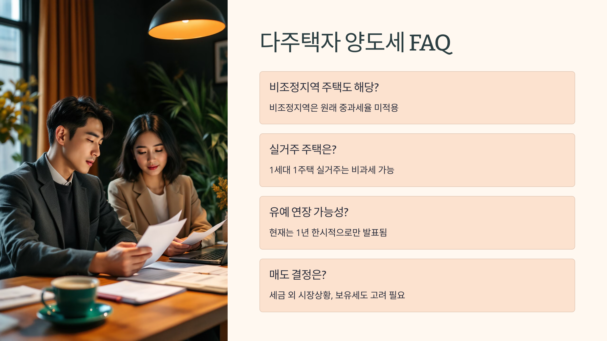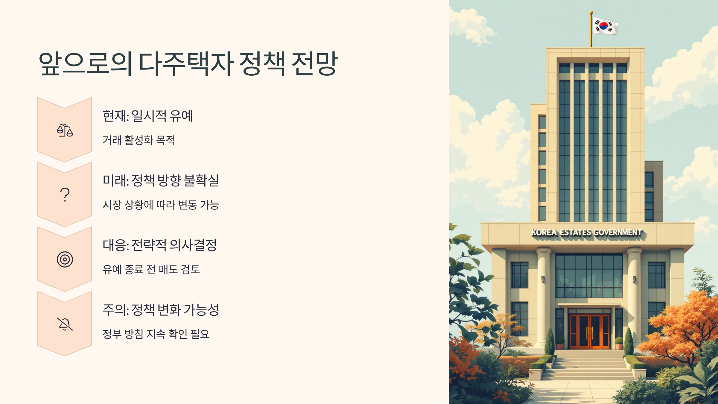 따라서 다주택자라면 **유예 종료 전까지 전략적 매도** 여부를 판단해야 해요. 세제 정책은 예고 없이 변할 수 있으니까요!
