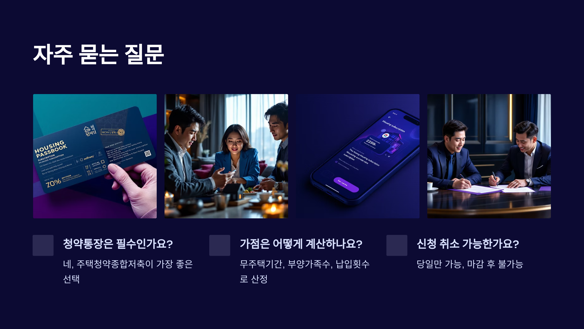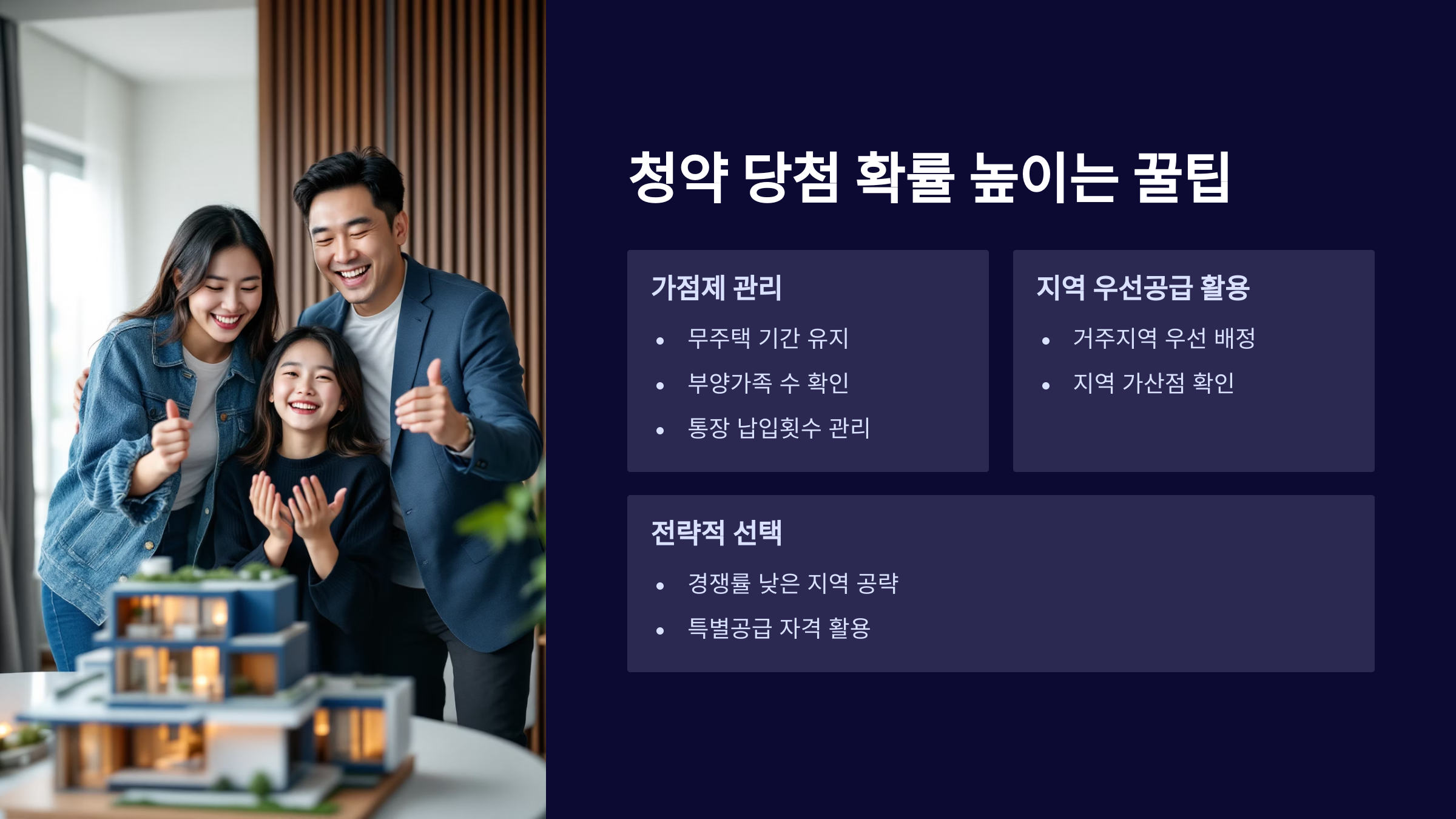 | 가점제 대비 | 무주택 기간, 부양가족 수, 통장 납입횟수 관리 |