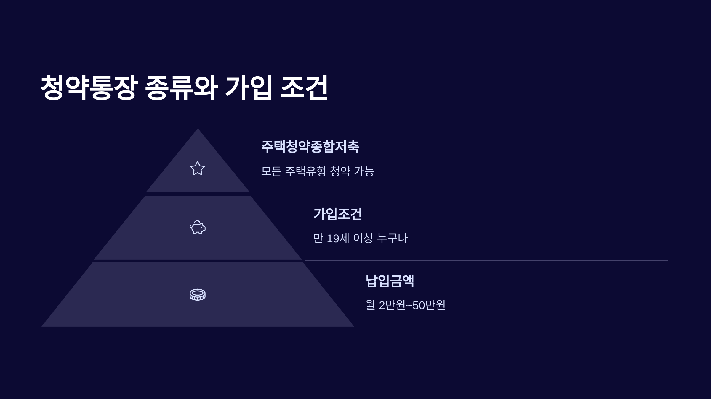 | 주택청약종합저축 | 무주택자, 유주택자 모두 | 공공·민영·특별공급 모두 | 전 연령 가능 |