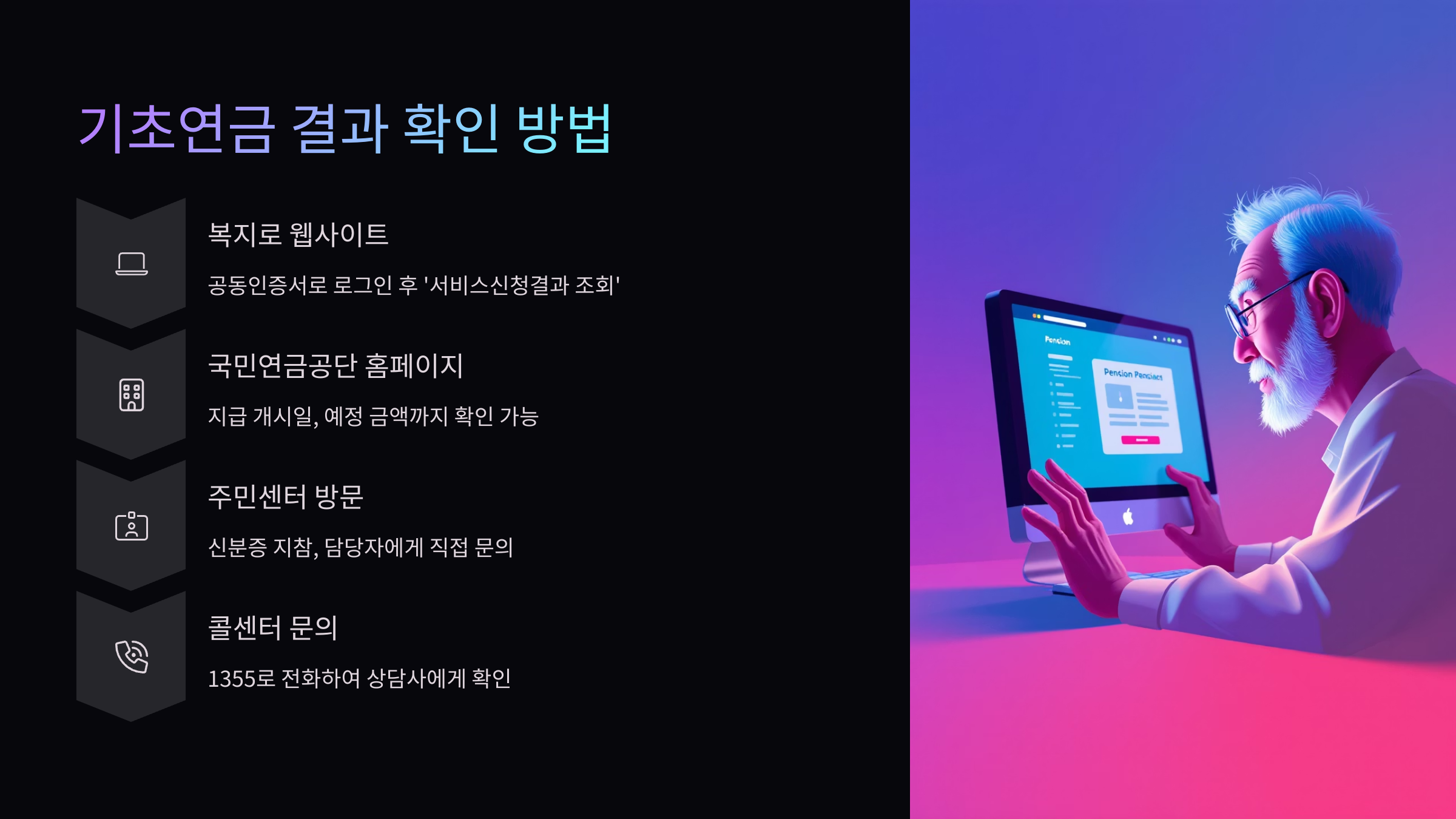 기초연금 신청 후 결과를 확인하는 방법은 여러 가지가 있어요. 가장 빠르고 정확한 건 **직접 확인하는 것**인데요, 온라인과 오프라인 모두 가능해서 편한 방법을 선택하시면 돼요.
