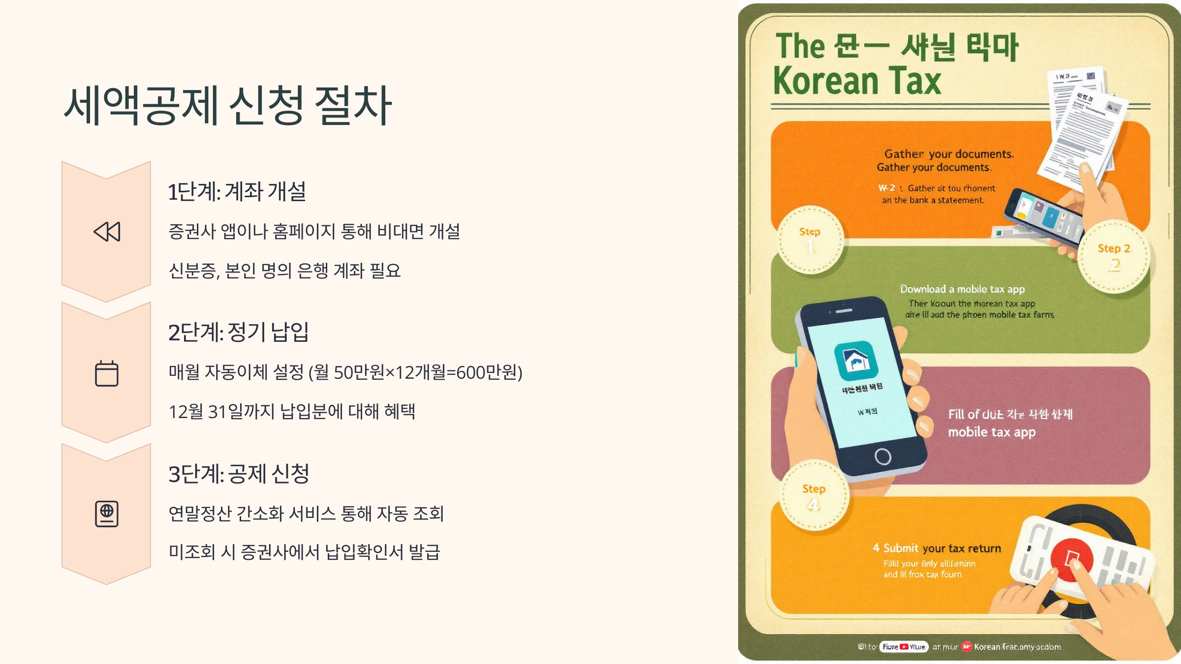 세액공제 혜택을 실제로 받기 위한 절차는 생각보다 간단합니다. 다음의 세 단계를 따라 진행하시면 됩니다.