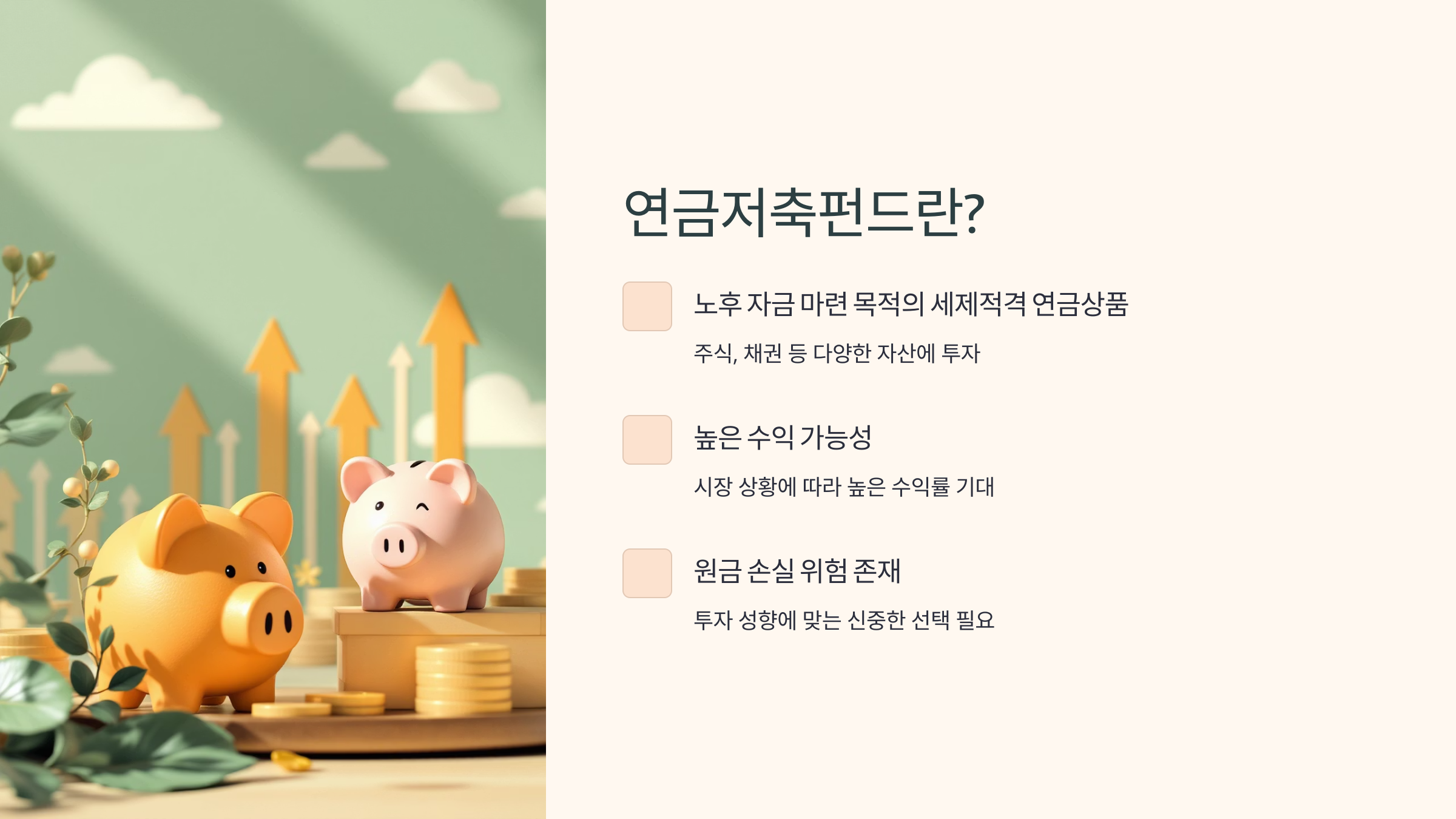 연금저축펀드에 대한 정확한 이해는 성공적인 절세 및 노후 설계의 첫걸음입니다. 단순히 세금을 아껴준다는 점 외에도 다양한 특징을 가지고 있습니다.