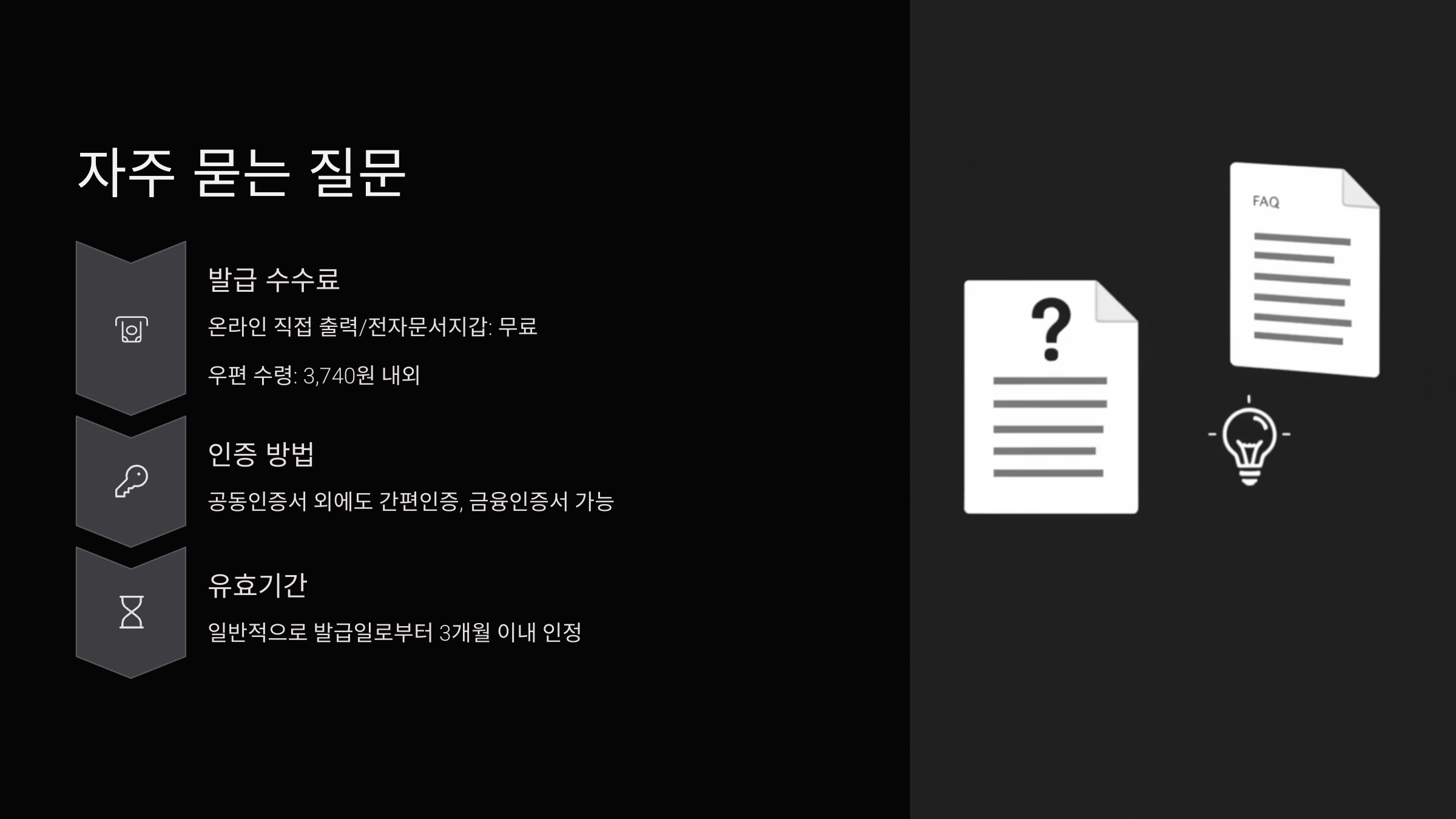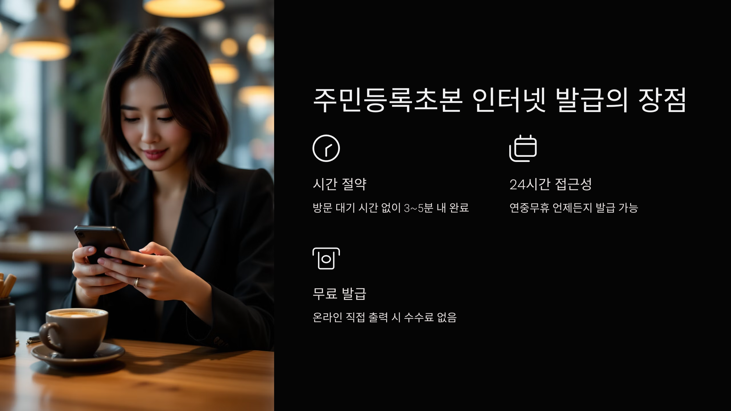- 24시간 접근성 보장: 정규 업무 시간(09:00~18:00)에 구애받지 않고, 연중무휴 24시간 언제든지 필요할 때 즉시 발급받을 수 있다는 점은 정말 큰 장점입니다. 심야나 주말에도 문제없습니다!