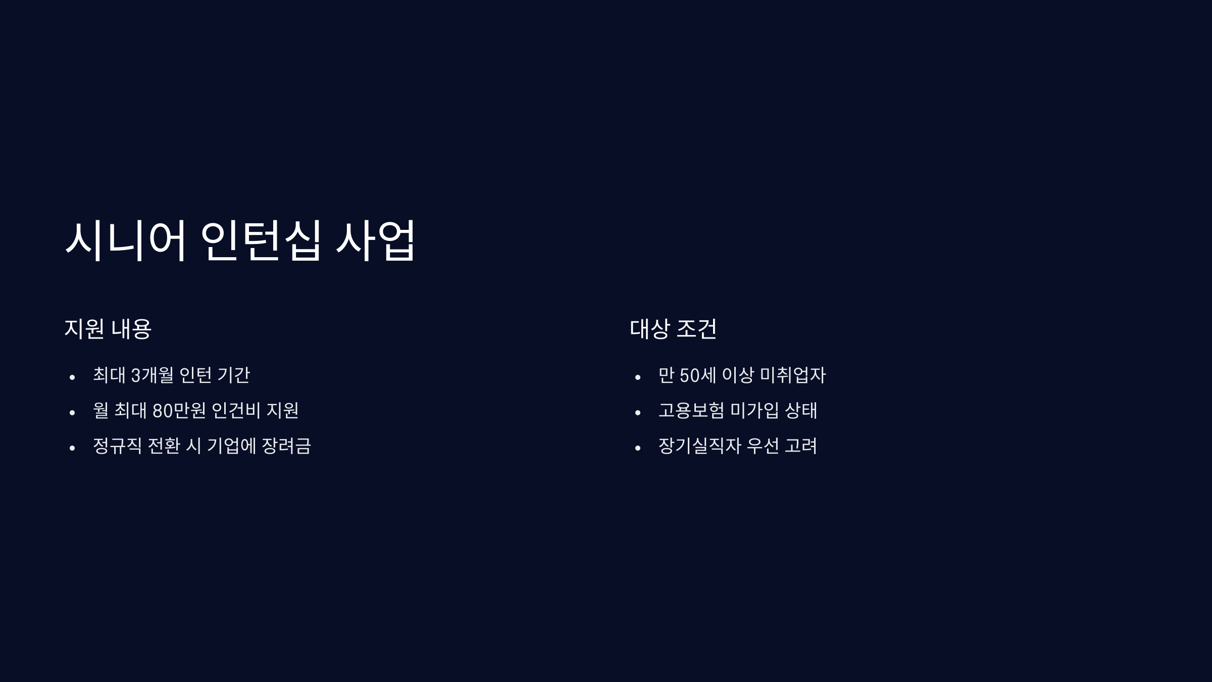 | 대상 | 만 50세 이상 미취업자 |