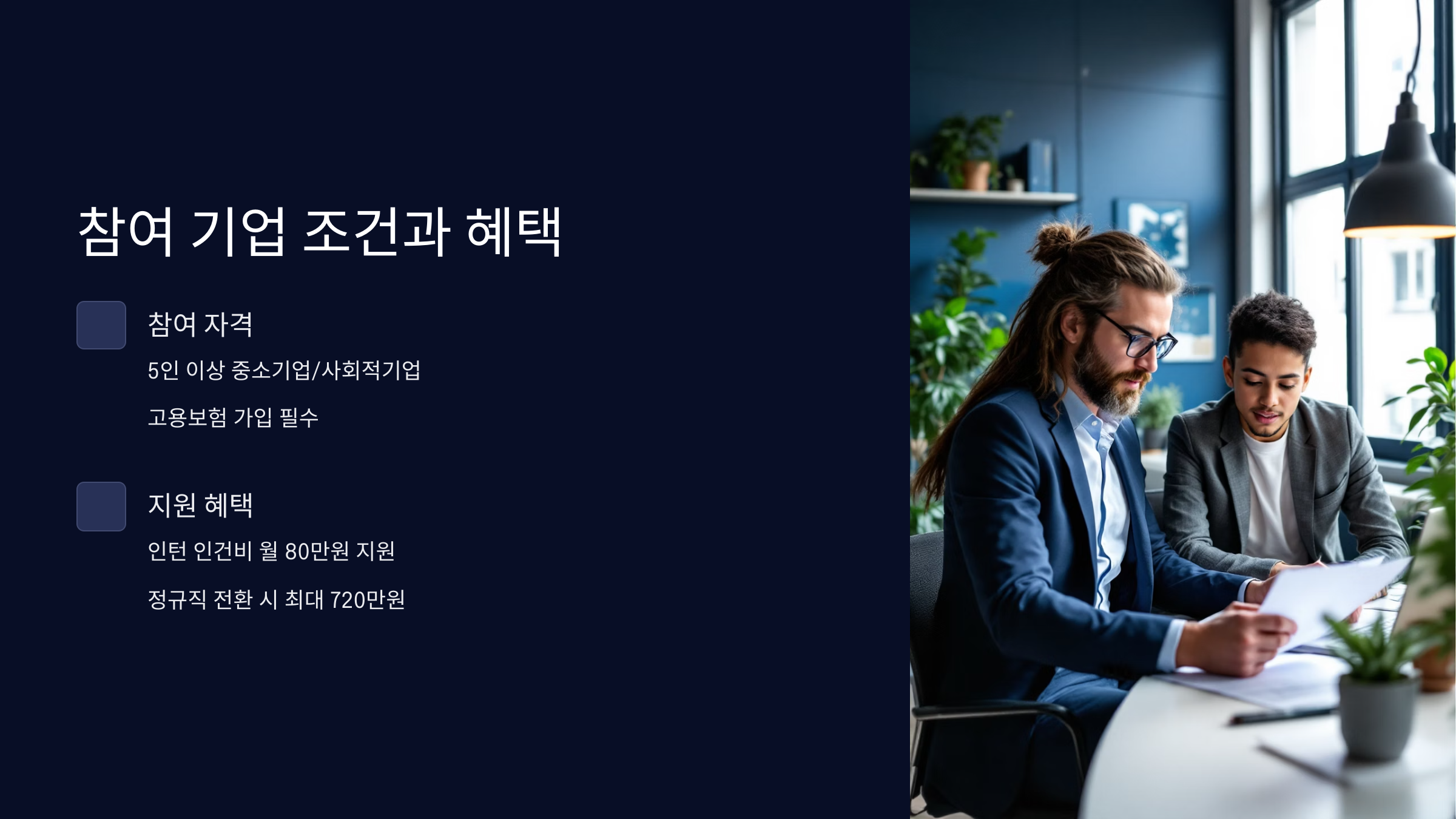 | 인턴 인건비 지원 | 월 80만 원 (최대 3개월) |