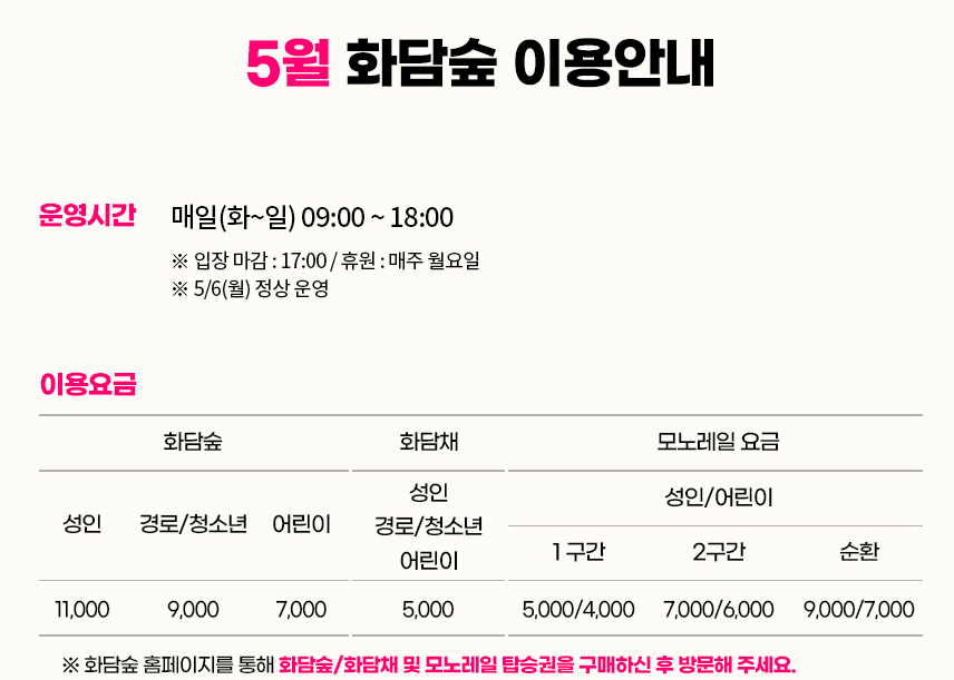 - 모노레일 요금: 성인 8,000원 / 어린이 5,000원