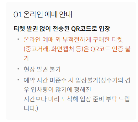 - 방문 당일 매표소에서 QR 코드 또는 예매 내역을 제시하면 입장 가능합니다.