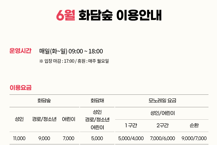 - 운영 시간: 오전 9시~오후 5시 (입장 마감: 오후 4시)