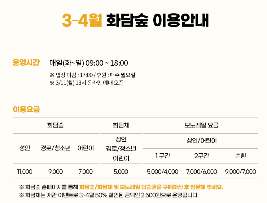 2. 화담숲 모노레일 이용법 (요금 & 시간 안내)