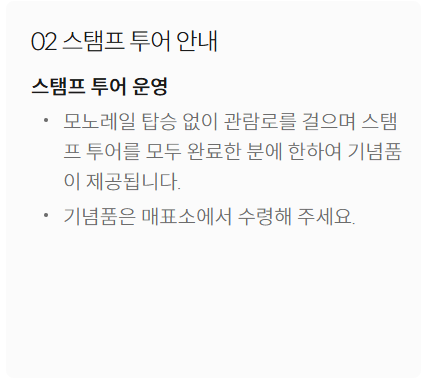 - 사전 예약 필수! 모노레일 이용 인원이 제한되어 있으므로, 티켓 예매 시 함께 신청하세요.