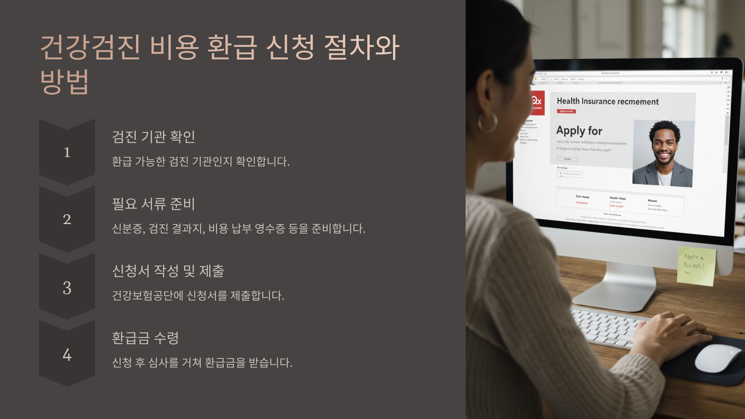 | 국민건강보험 환급 | 건강검진 영수증, 신분증 | 검진 후 6개월 이내 | 국민건강보험공단 홈페이지 또는 지사 방문 |