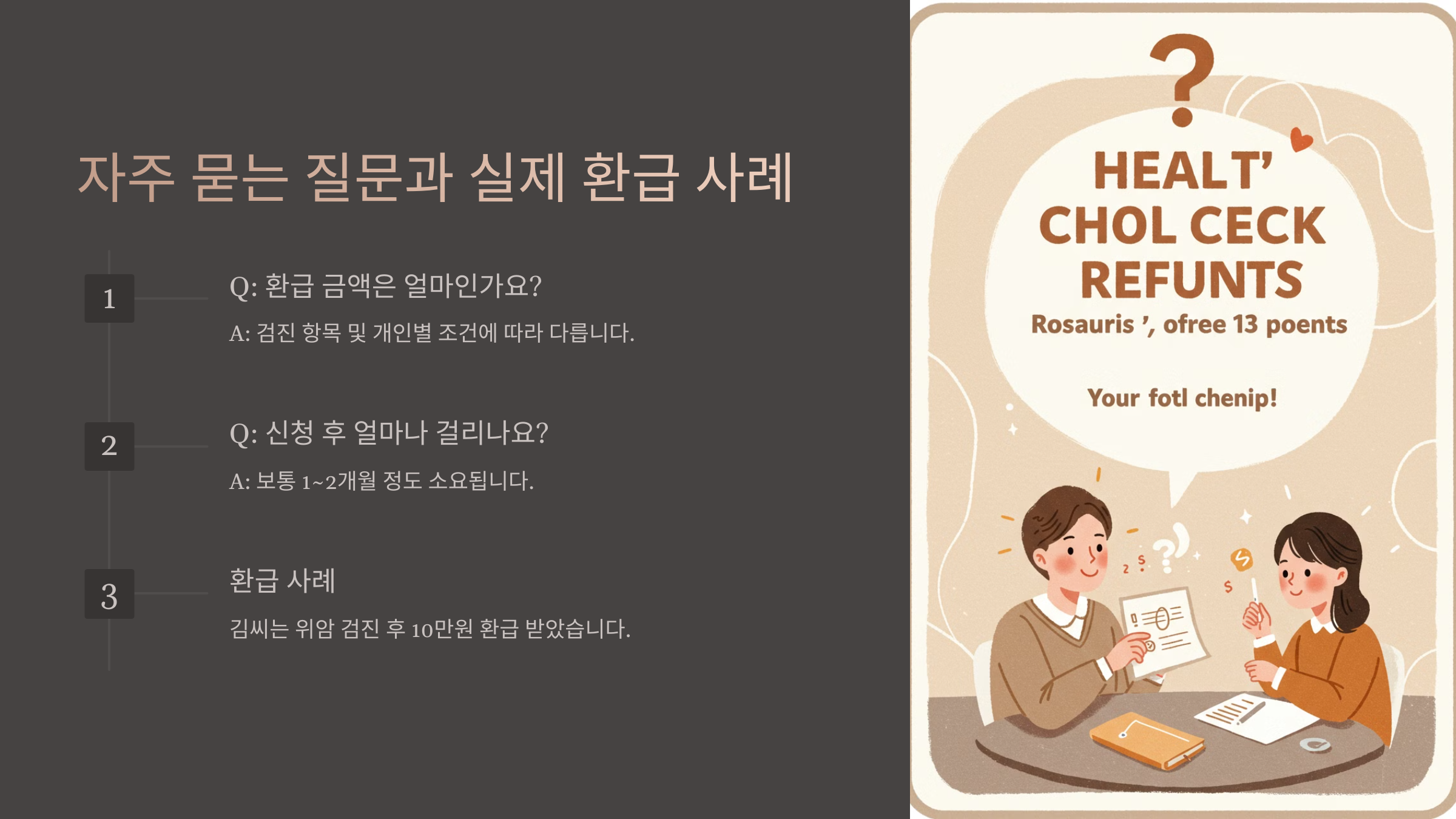 A7. 건강보험공단에서 제공하는 검진은 일정 주기마다 받을 수 있으며, 중복 환급은 어려울 수 있어요. 추가 검진비는 개별 확인이 필요해요.