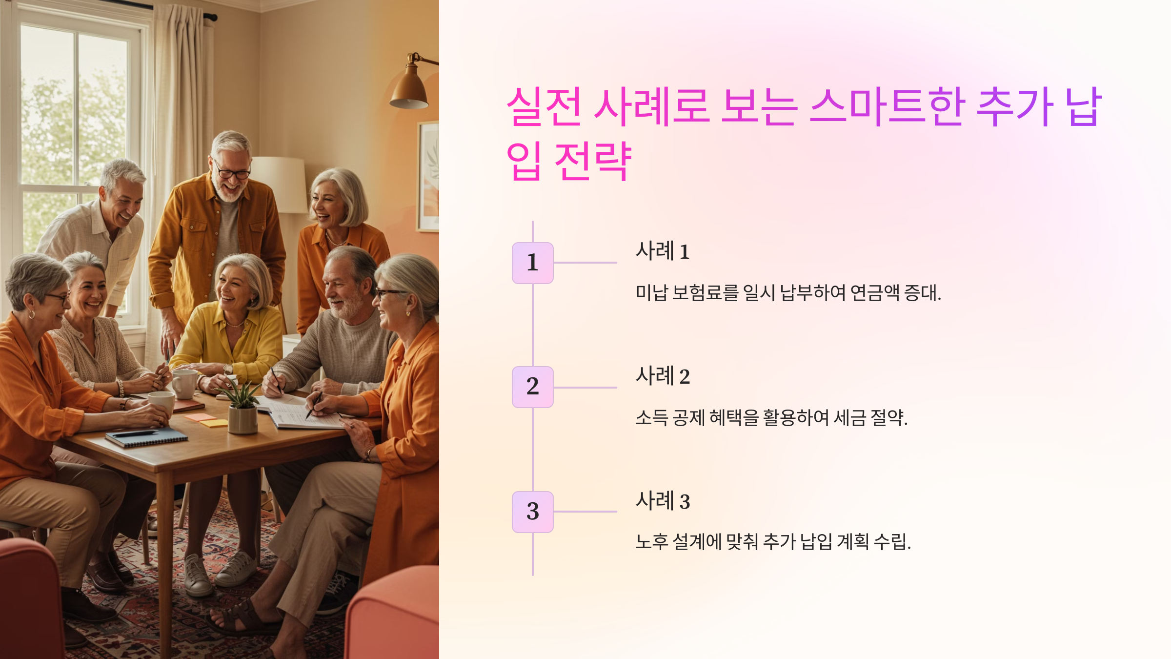 추가 납입을 하면 연금 가입 기간이 길어지고 수령액이 늘어나기 때문에 노후 대비에 유리해요. 하지만 신청 대상과 조건이 있으니 이를 잘 확인해야 해요.