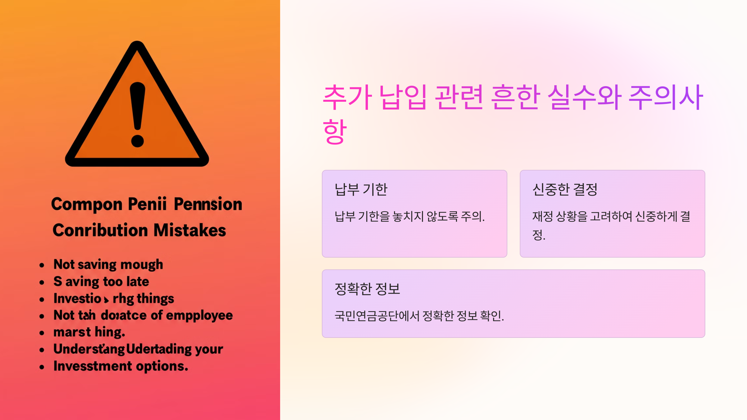 국민연금 추가 납입을 할 때 몇 가지 실수로 인해 불이익을 받을 수 있어요. 미리 주의할 점을 확인하고, 불필요한 손해를 피하는 것이 중요해요.