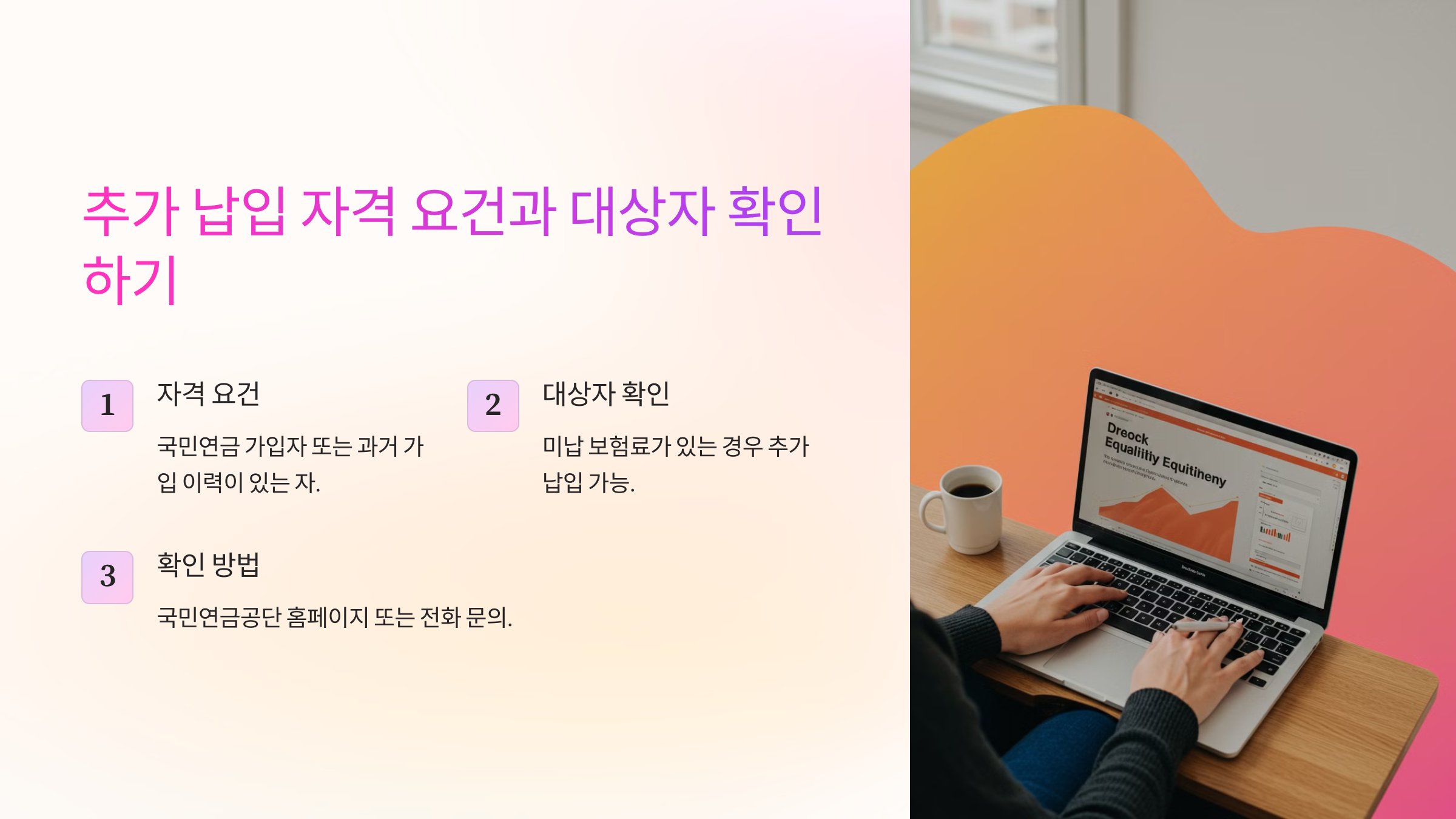 국민연금 추가 납입은 모든 사람이 할 수 있는 것은 아니에요. 특정 조건을 충족해야 추가로 납부할 수 있어요. 본인이 해당하는지 확인해보세요!