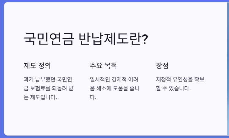 | 제도 목적 | 과거 반환일시금을 받은 사람에게 연금 가입 기간을 복원할 기회 제공 |