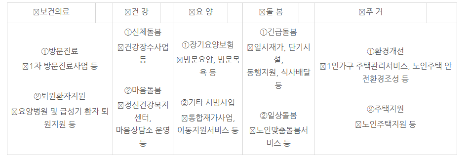 ✔ 서비스 제공 내용: 의료·건강·요양·돌봄·주거 맞춤형 통합 지원