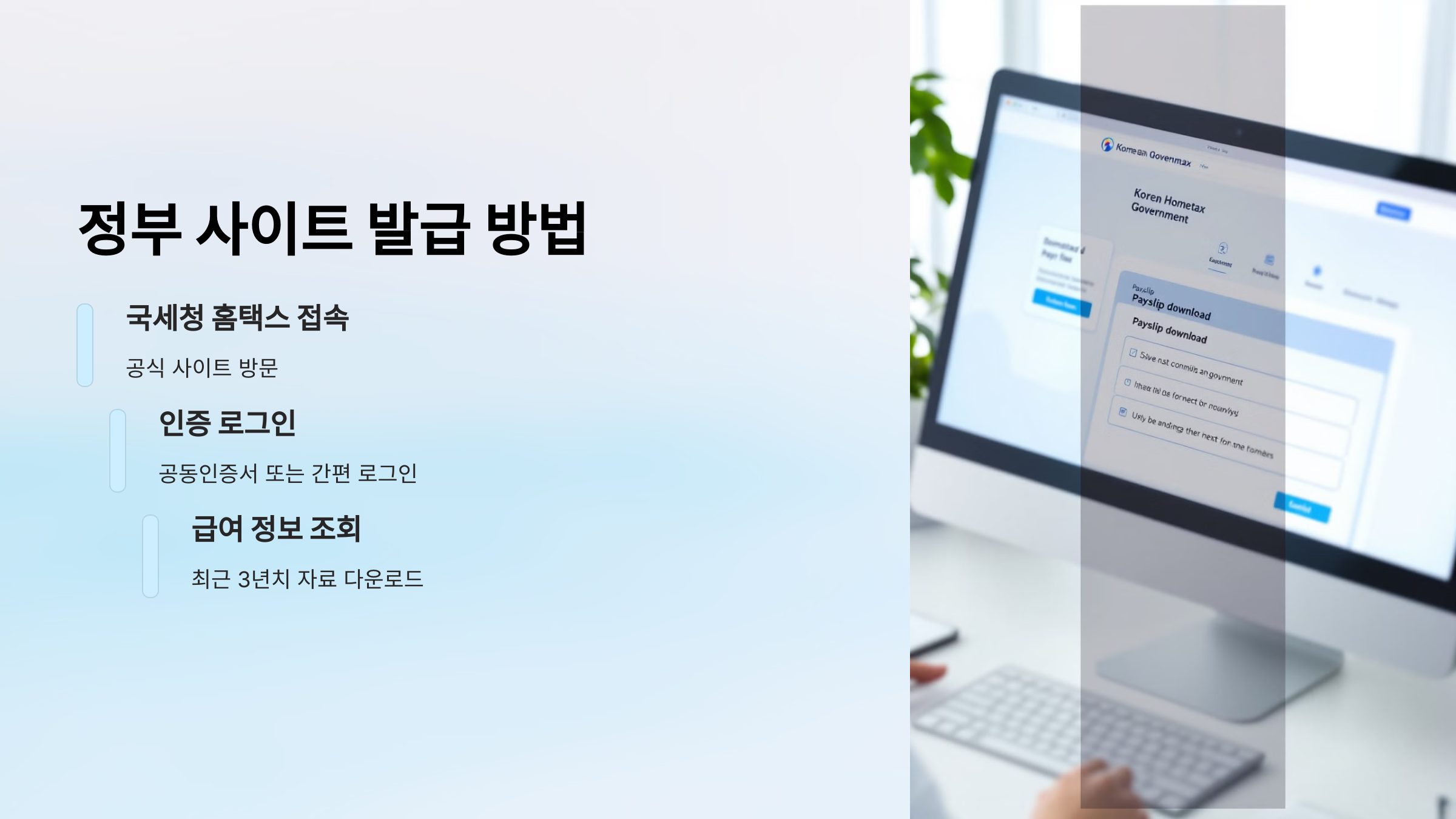 인터넷으로 급여 명세서를 발급받을 수 있는 대표적인 정부 기관은 국민연금공단, 고용노동부, 국세청 등입니다. 이들 기관은 각종 소득 및 보험료 납부 내역을 제공하고 있으며, 급여 명세서와 유사한 형식의 증명서도 제공하고 있어요.