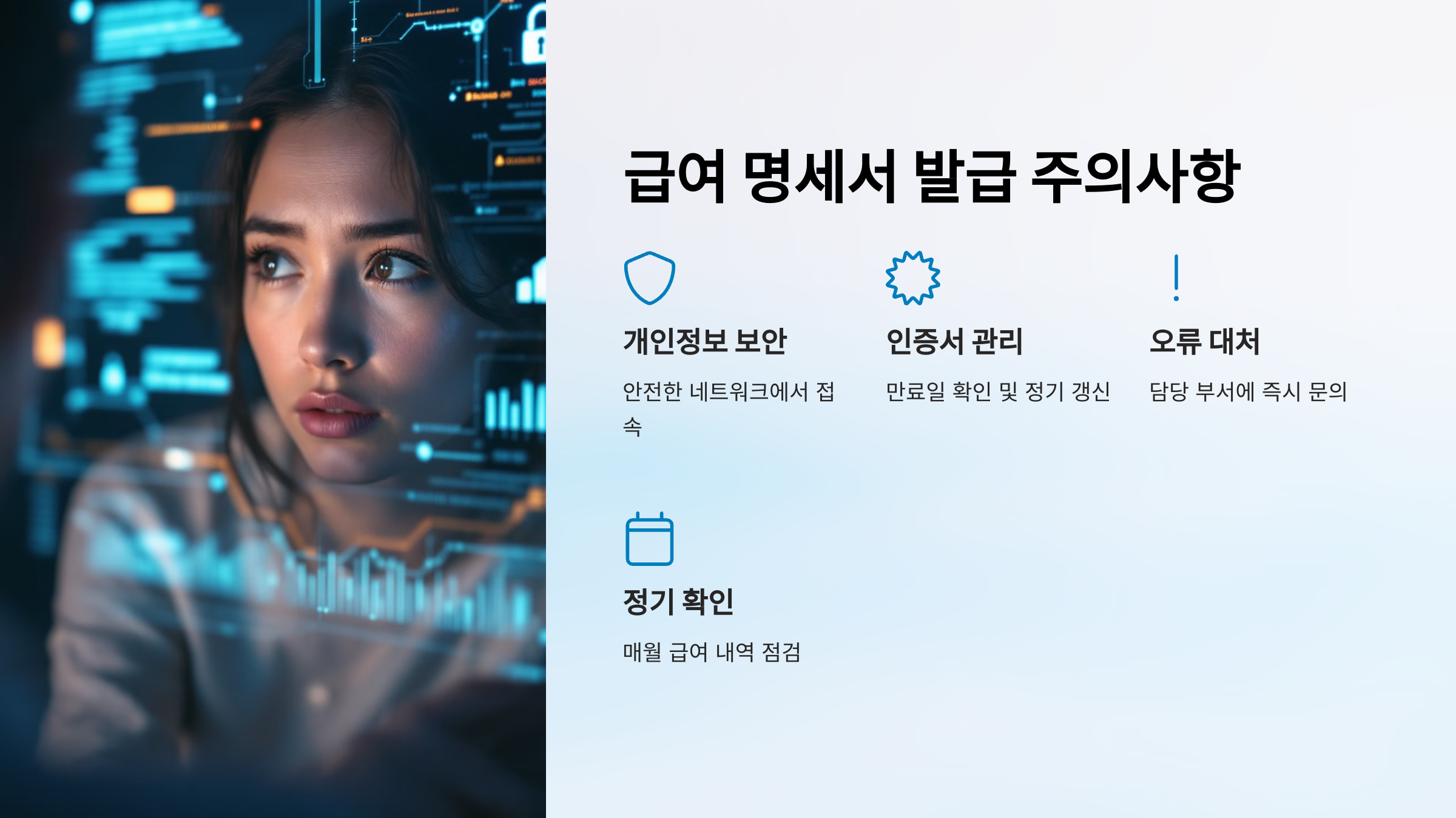 급여 명세서를 발급할 때는 반드시 개인 정보를 안전하게 보호해야 합니다.