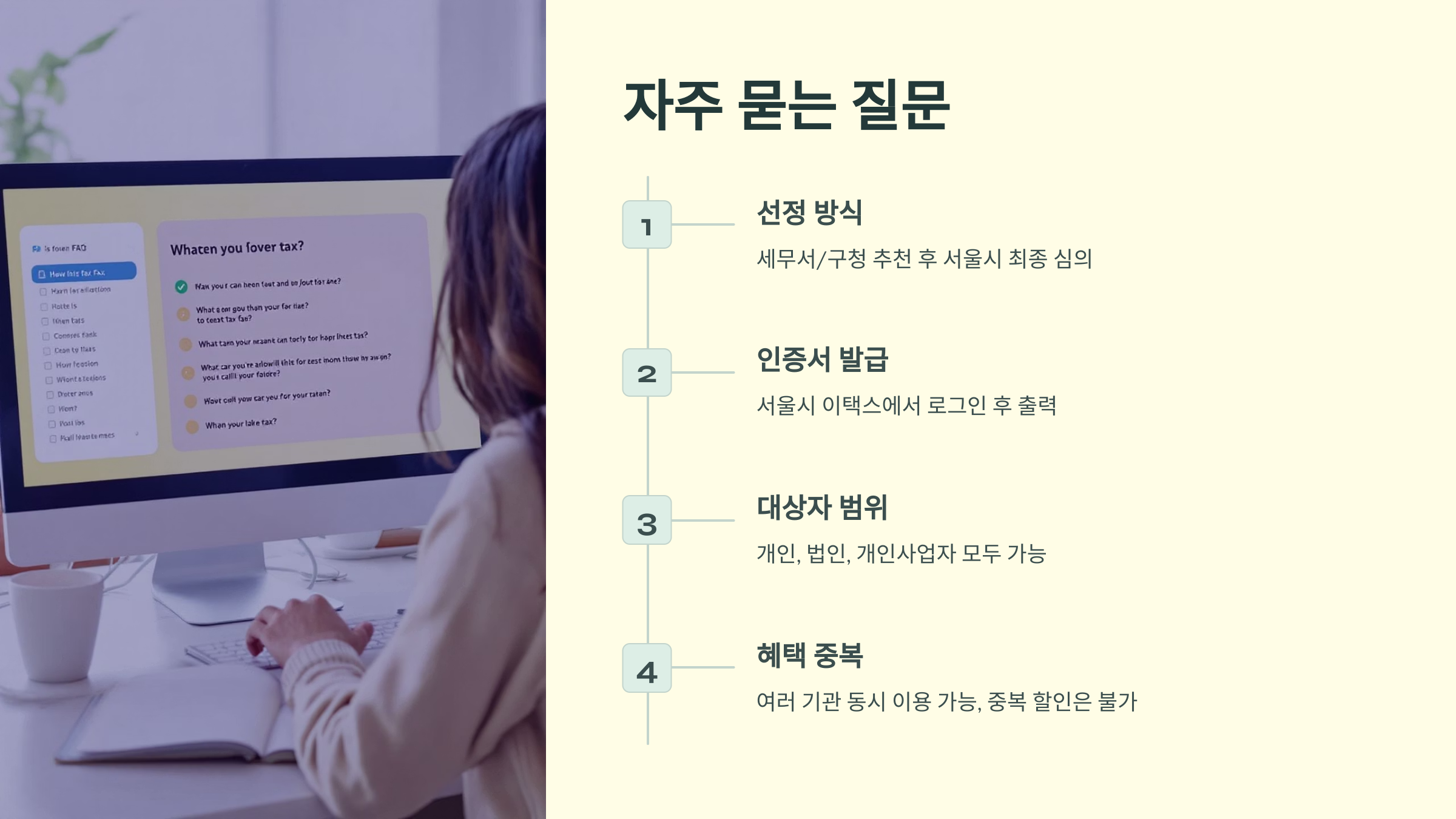 A1. 아니에요! 세무서나 구청의 추천 후 서울시가 최종 심의하여 선정해요.