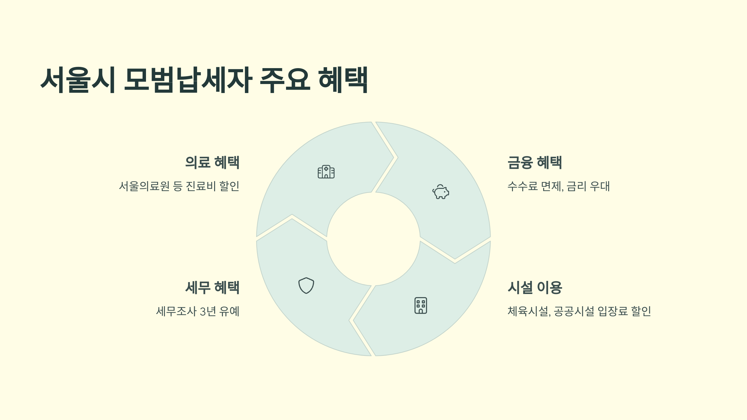 서울시는 매년 ‘모범납세자’를 선정해 다양한 혜택을 제공하고 있어요. 단순히 세금만 제때 낸다고 되는 건 아니고, 성실하게 납세한 시민과 기업에게 주어지는 명예로운 타이틀이죠.