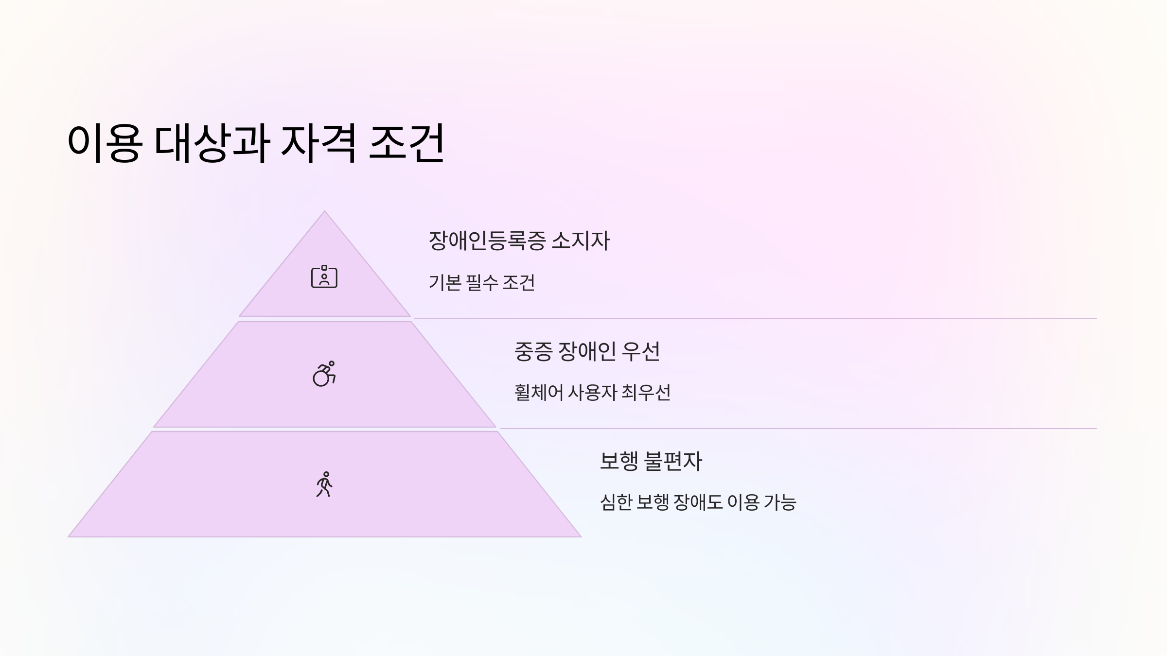 | 우선 대상 | 중증 지체·뇌병변 장애인 (휠체어 사용자) |