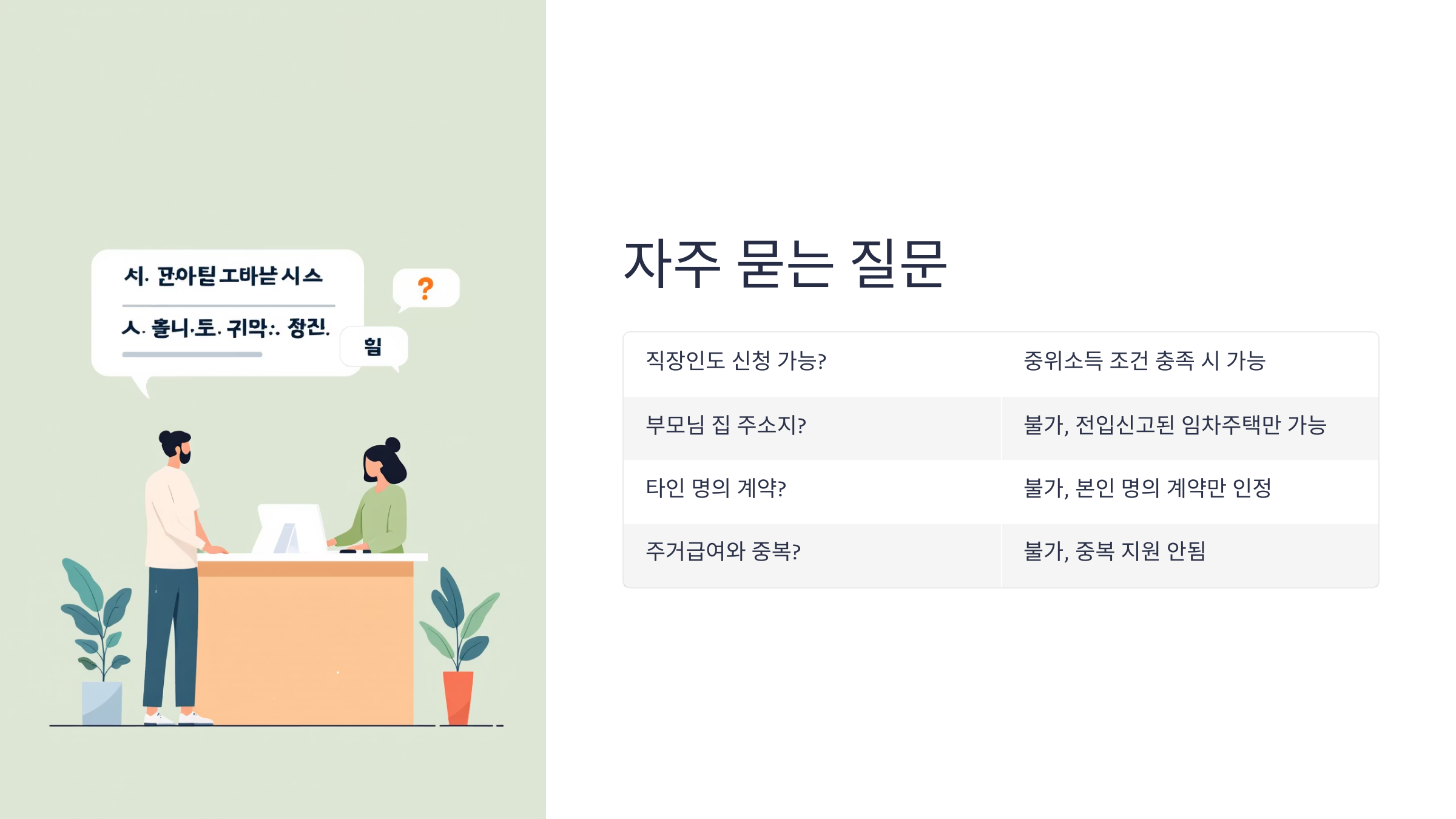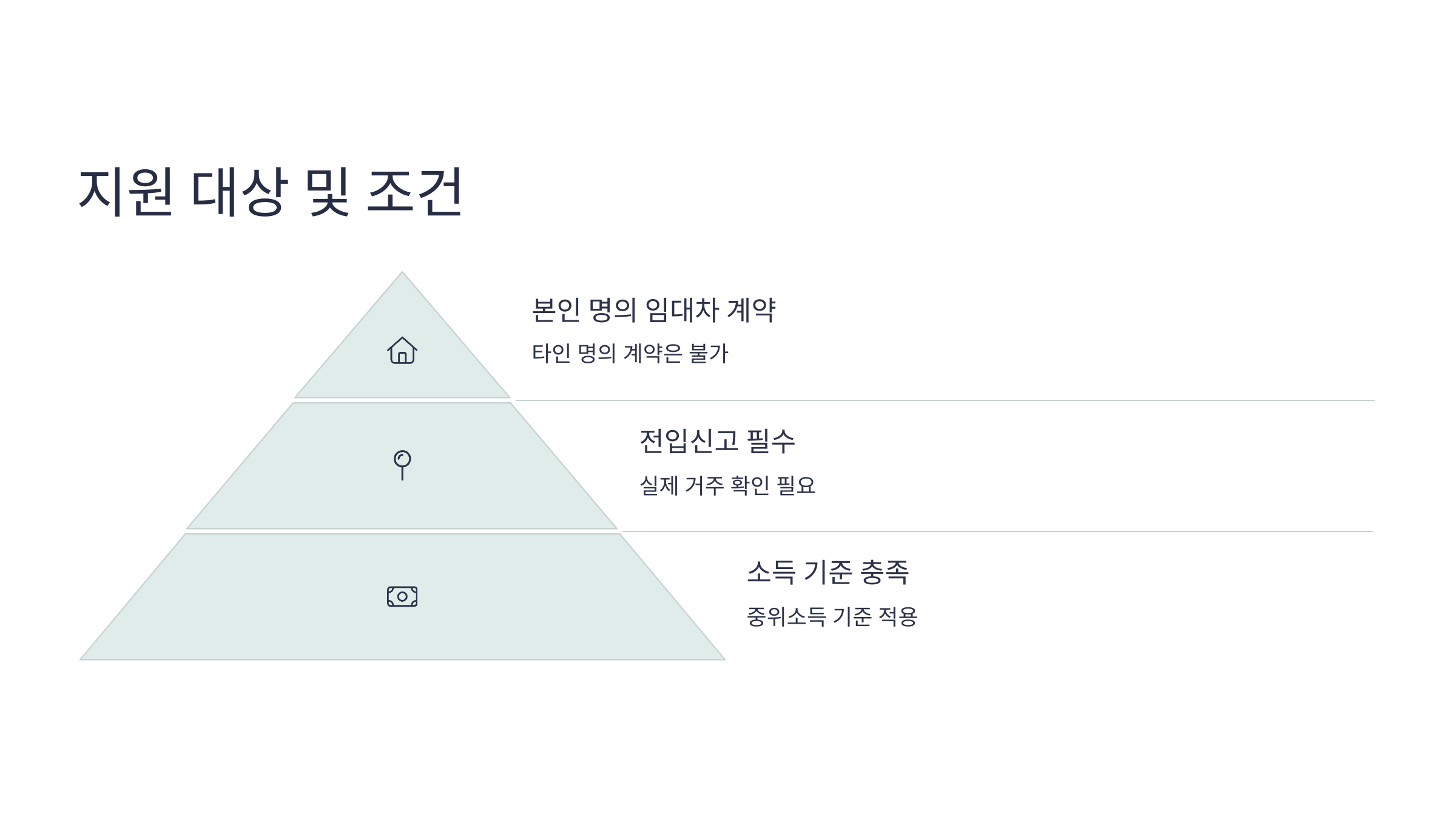 지원 대상은 단순히 나이와 소득 조건만 맞는다고 되는 것이 아니며, 실제 거주지 및 계약 관계 등 다양한 조건을 만족해야만 수급이 가능합니다.