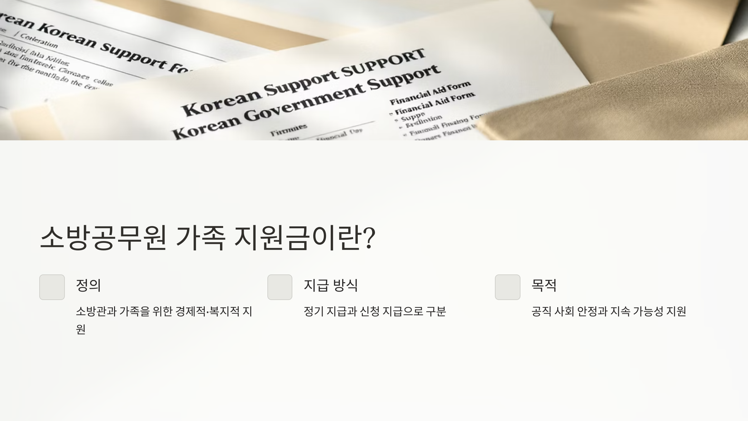 소방공무원 가족 지원금은 소방관 본인은 물론 그 가족을 위한 다양한 형태의 경제적·복지적 지원을 말해요. 교육비, 의료비, 정신건강 상담, 경조사비, 주거 지원 등 항목별로 나뉘며 현행 법령에 따라 각 지방자치단체나 소방청에서 운영하고 있어요.