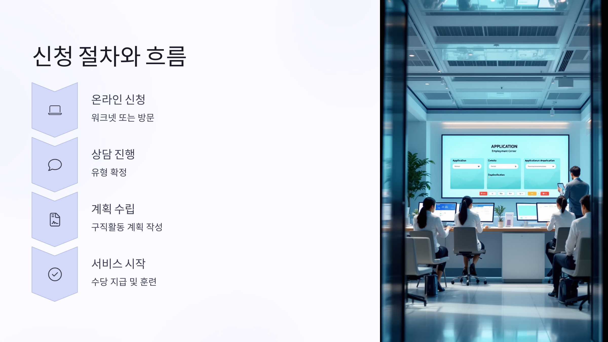 2유형은 심사 절차가 비교적 간단해요. 상담 후 곧바로 서비스 제공이 가능하며, 직업훈련이나 일경험 프로그램은 빠르게 참여할 수 있어요.