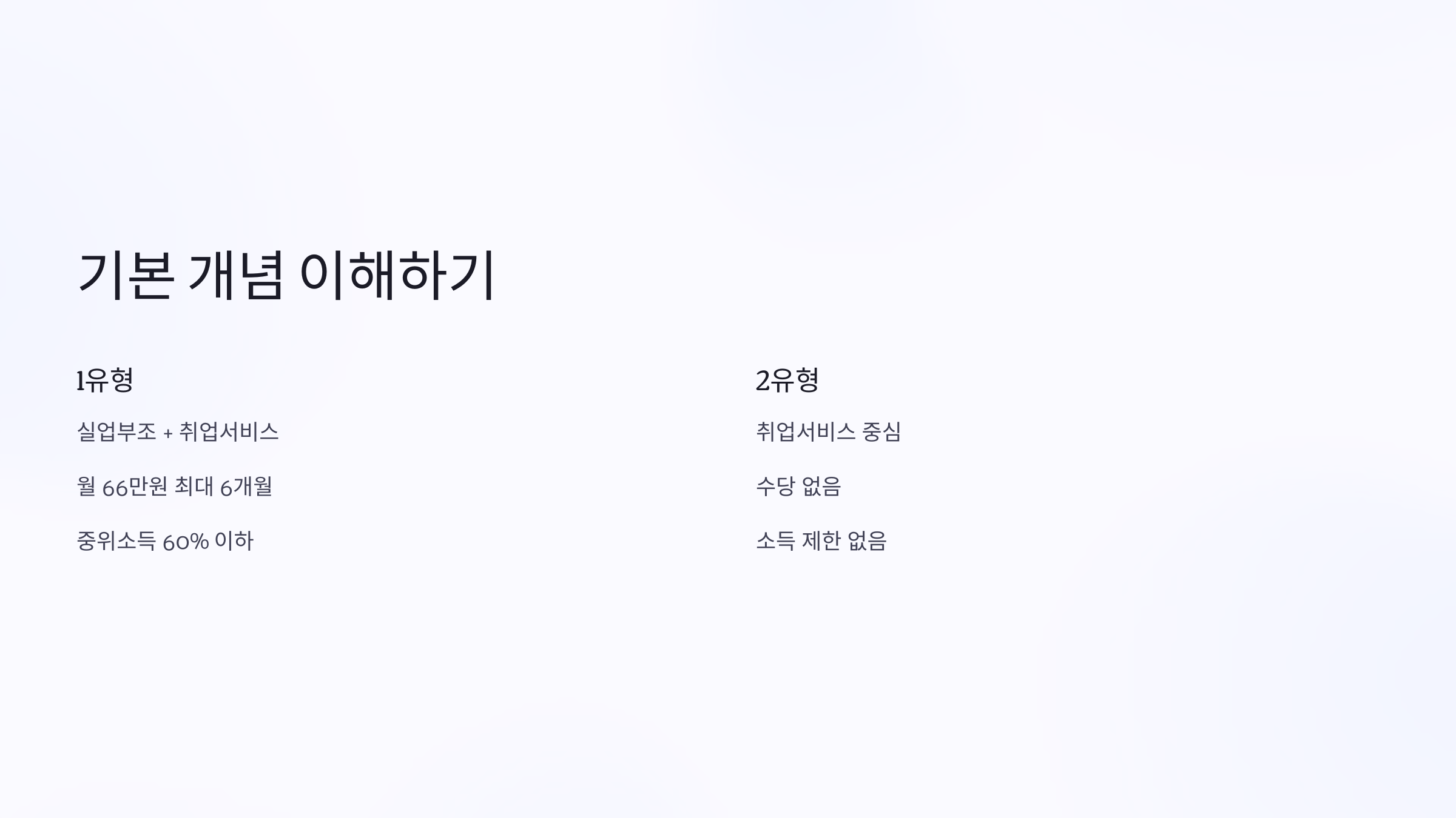 제가 생각했을 때 본인의 생활 상황(소득, 재산)과 구직 의지에 따라 유형을 신중히 선택하는 것이 가장 중요한 포인트예요. 지금부터 차이를 조목조목 정리해드릴게요!