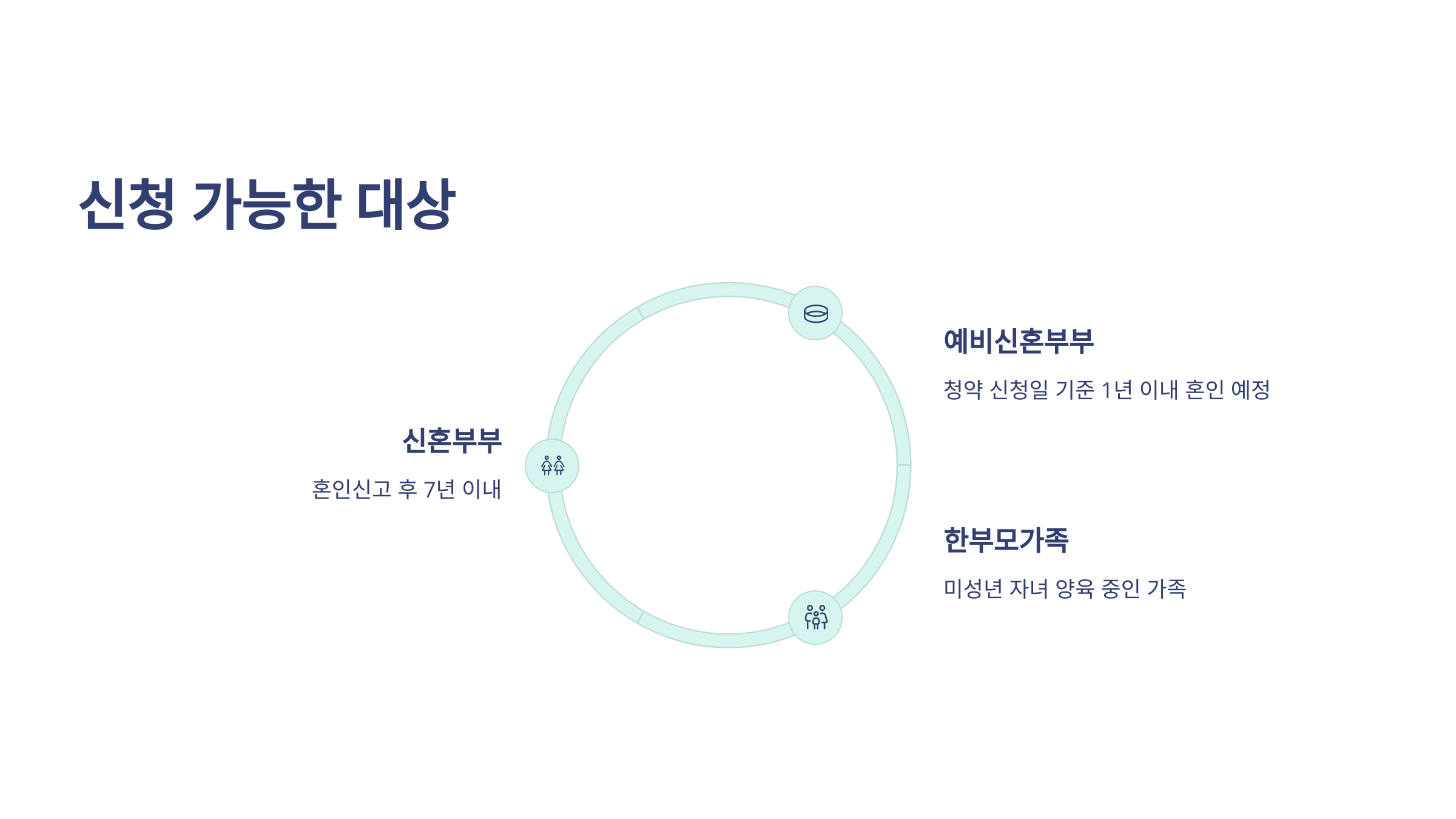 신혼희망타운 공공분양은 단순히 ‘결혼한 사람’만 신청할 수 있는 게 아니에요. 정부는 다양한 상황을 고려해서 총 3가지 그룹을 신청 대상으로 정했어요.