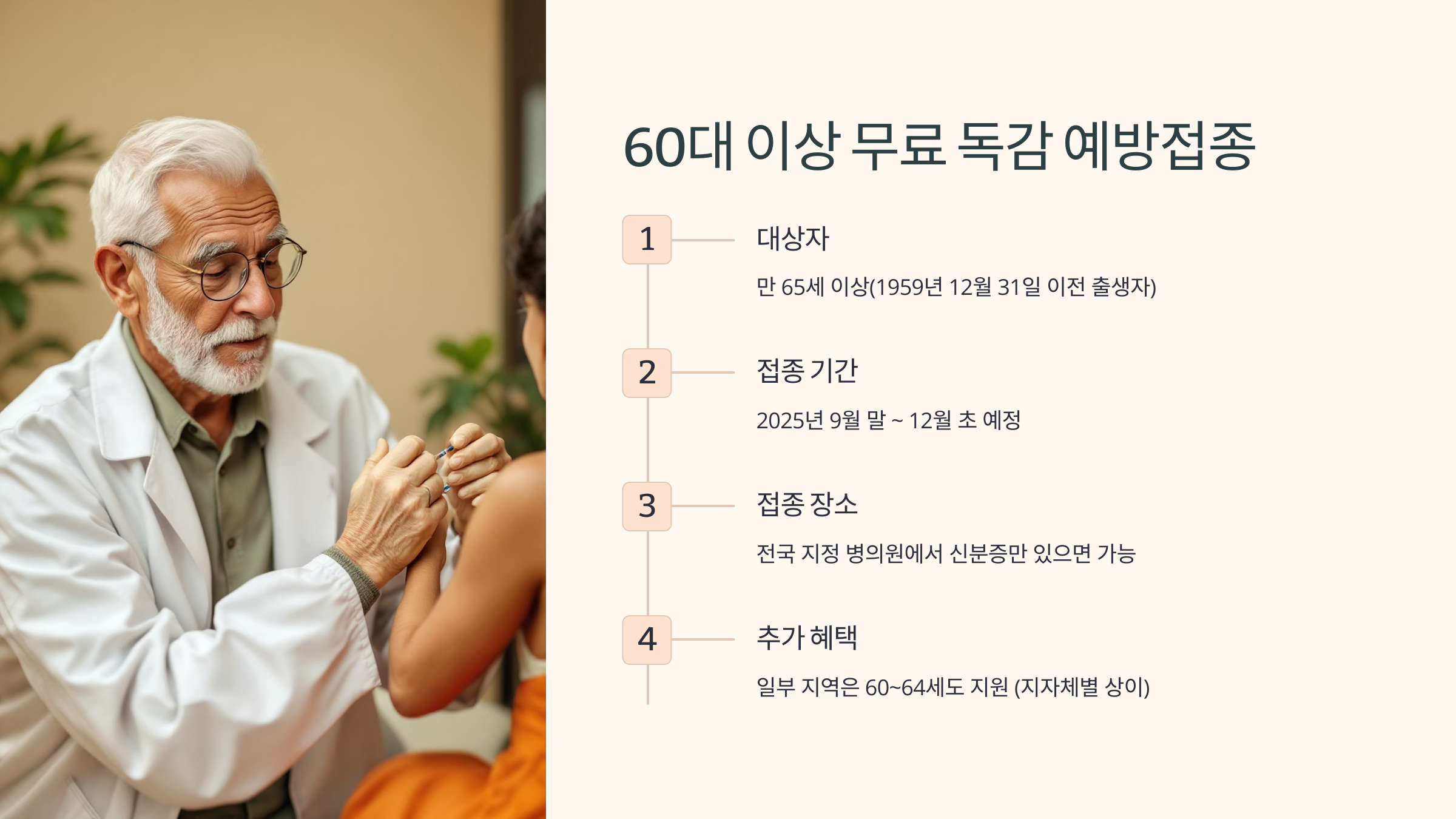 ✔️ 예방접종 대상 및 기간 - 만 65세 이상(1959년 12월 31일 이전 출생자) - 2025년 기준: 9월 말 ~ 12월 초 예정 - 지정 위탁 의료기관은 예방접종도우미 누리집에서 조회 가능 - 일부 지역은 60~64세도 지원 (지자체별 상이)